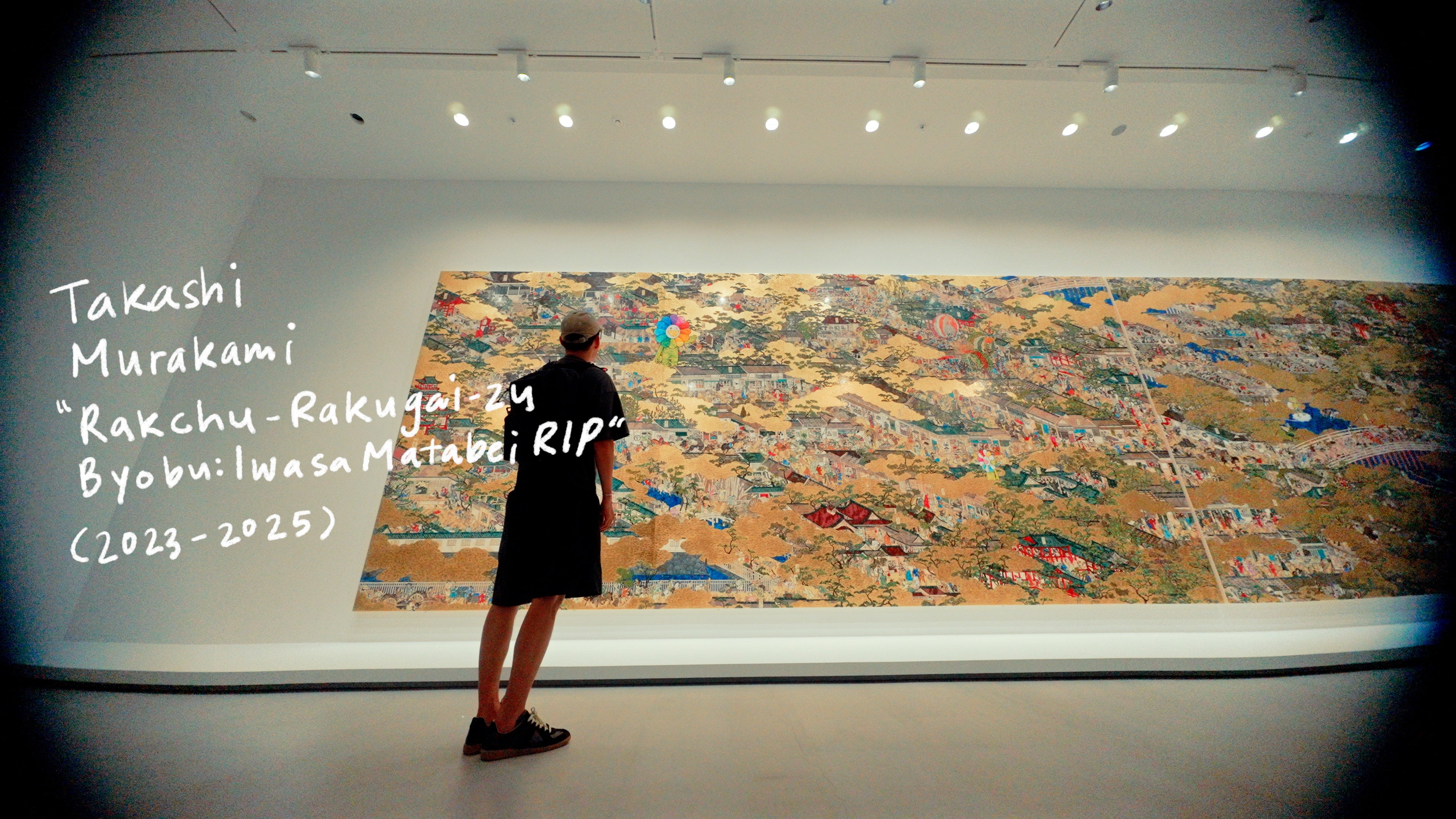 Across the gallery, Takashi Murakami greeted viewers with an electric saturation of color, pattern, and layered symbols. His work doesn’t pull you in gently—it comes at you with full force, offering a world that is both playful and loaded with tension. Where Suh works in whispers, Murakami moves like a marching band.