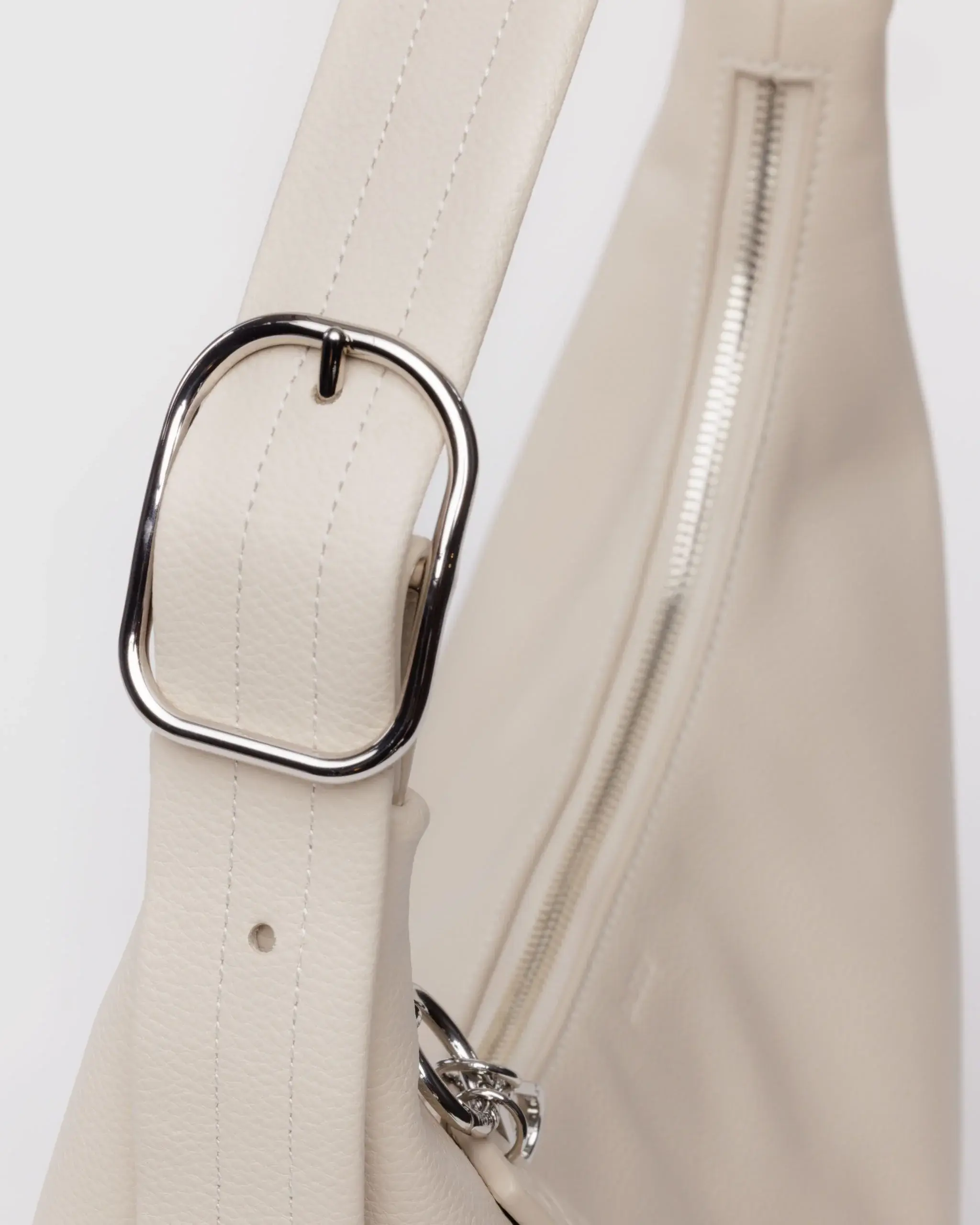 The fan-favorite crescent bag — but leveled up in leather. Smooth curved silhouette with a minimal, slightly futuristic vibe.