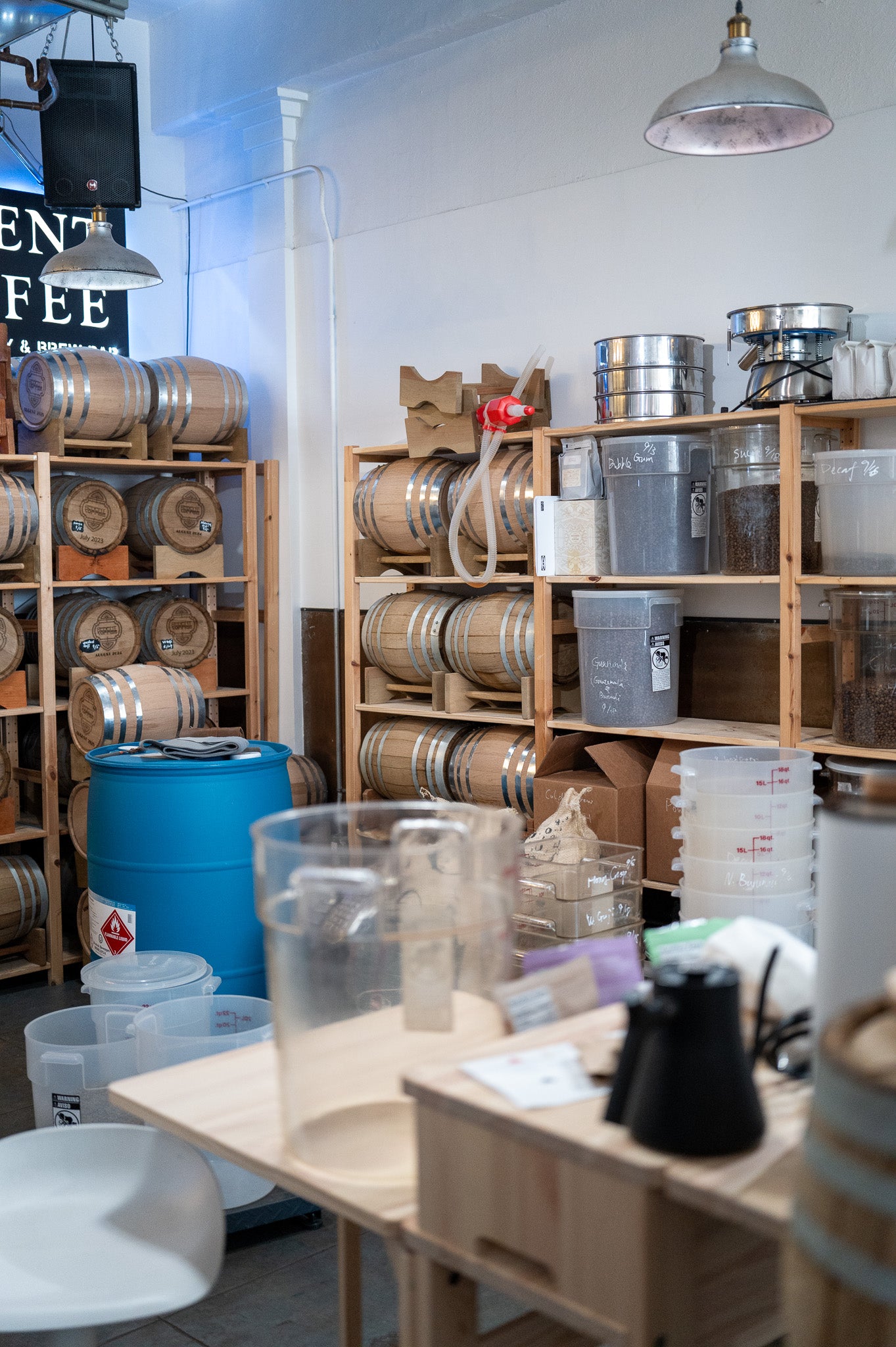 He spoke about Regent’s transformation over the years — especially during the pandemic, when the café evolved from a neighborhood coffeehouse into a roaster’s workshop. Today, precision defines the space: polished metal counters, glass jars, and steady rhythms of grinding and weighing. Every movement feels deliberate, guided by both curiosity and care.