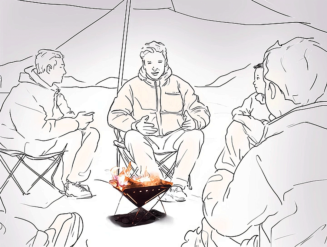 Among all their innovations, one piece stands as especially iconic: the "Takibi" (firepit). This was a product that didn't exist in the Japanese market. In the camping scene at the time, people enjoyed campfires by placing firewood directly on the ground, causing damage to grass and leaving permanent burn marks behind. Snow Peak's developers were deeply pained by seeing such scenes.