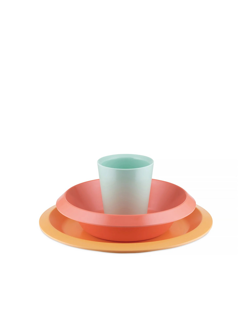 Giro Kids is a basic but complete children’s table set. A complete place setting for children's meals, consisting of a plate, bowl and beaker. Designed to meet the needs of children, for that fundamental path that develops their independence and autonomy, as they relate to others at the table as though they are playing a game. The colours of the various elements of the set leave room for children's tastes and imagination.