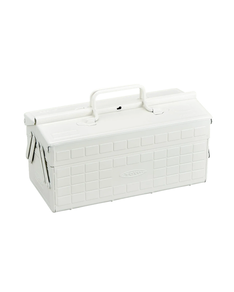 The Toyo ST-350 toolbox is a robust and versatile storage solution, perfect for organizing a variety of items such as tools, art supplies, or even medical supplies.