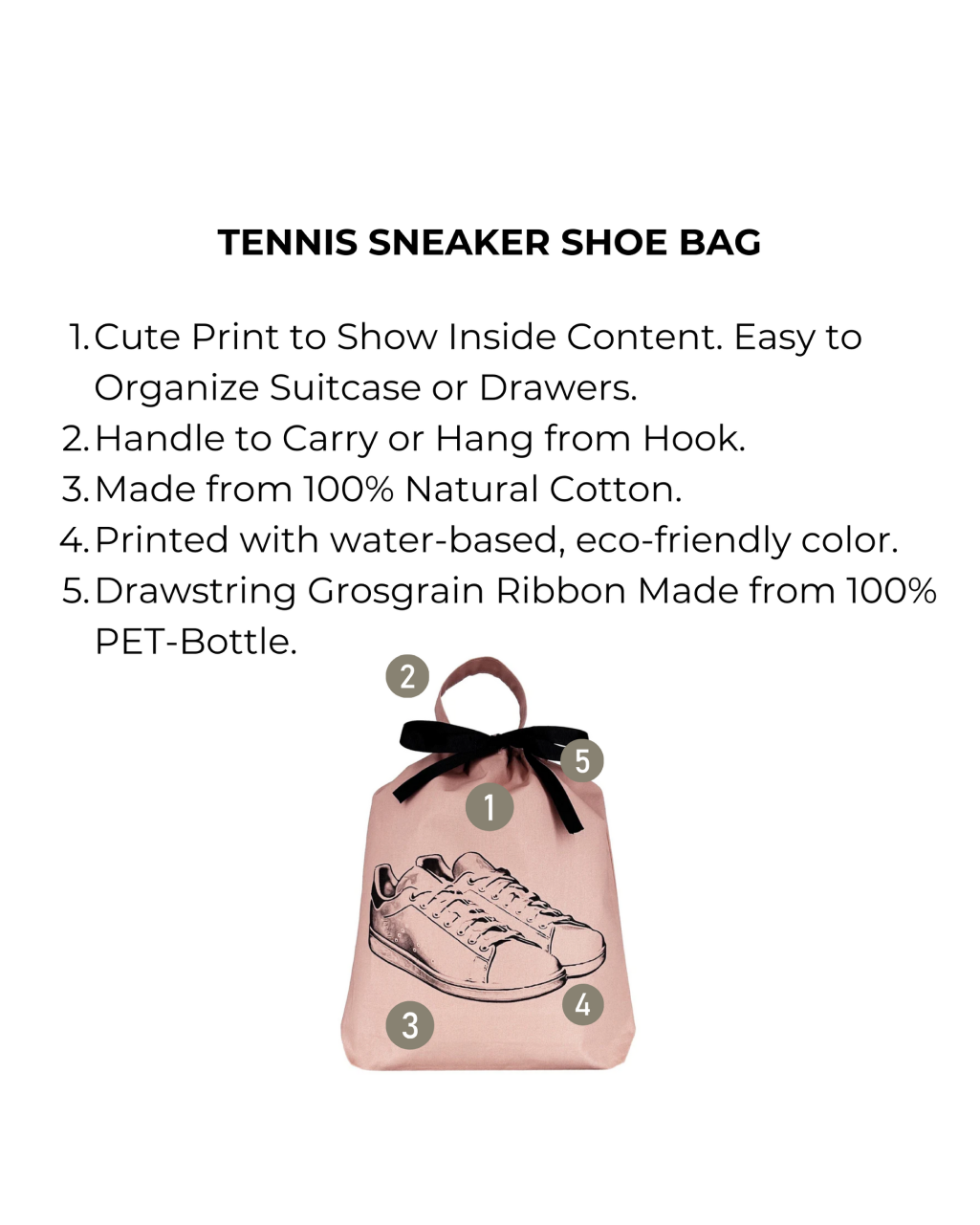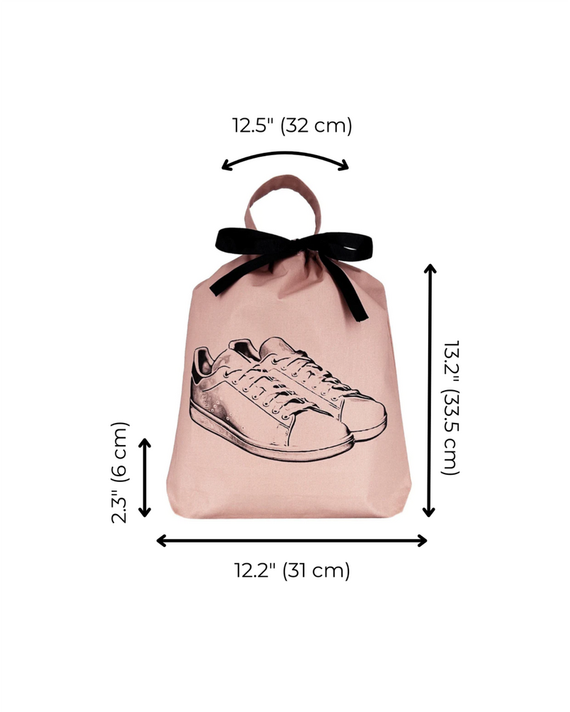 The Tennis Sneaker Shoe Bag keeps your sneakers protected and separate from other items while traveling or at home. Made from 100% natural cotton, it features a durable handle and a drawstring closure made from recycled materials. The stylish print ensures easy identification, and the monogram option adds a personal touch. Stay organized and eco-friendly with this must-have shoe bag.