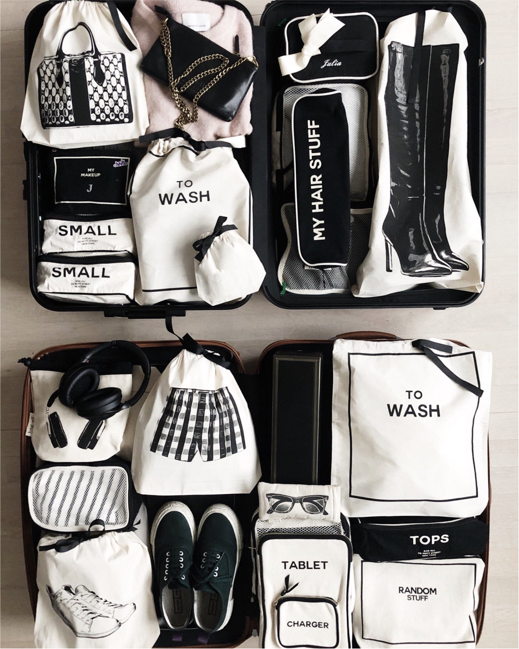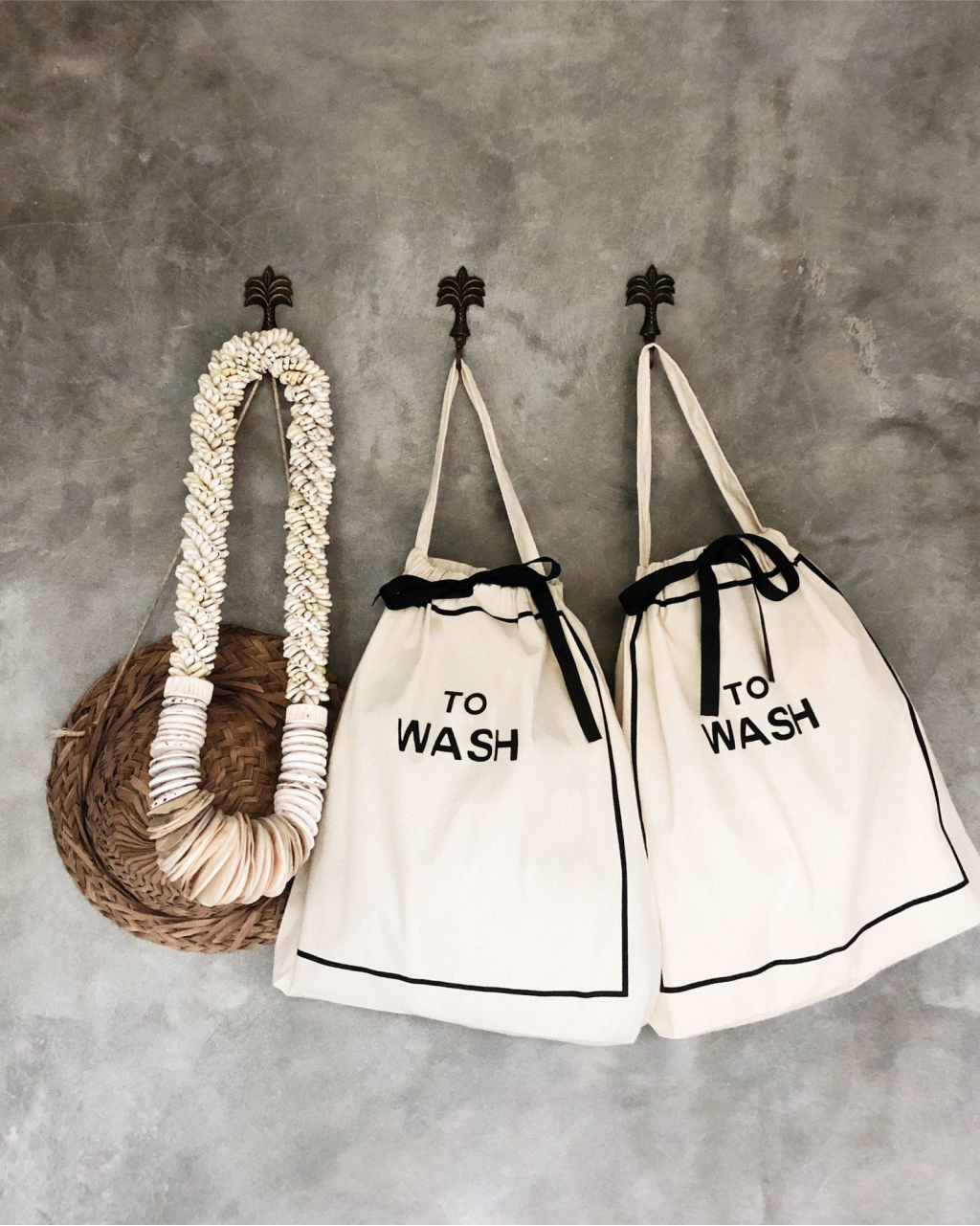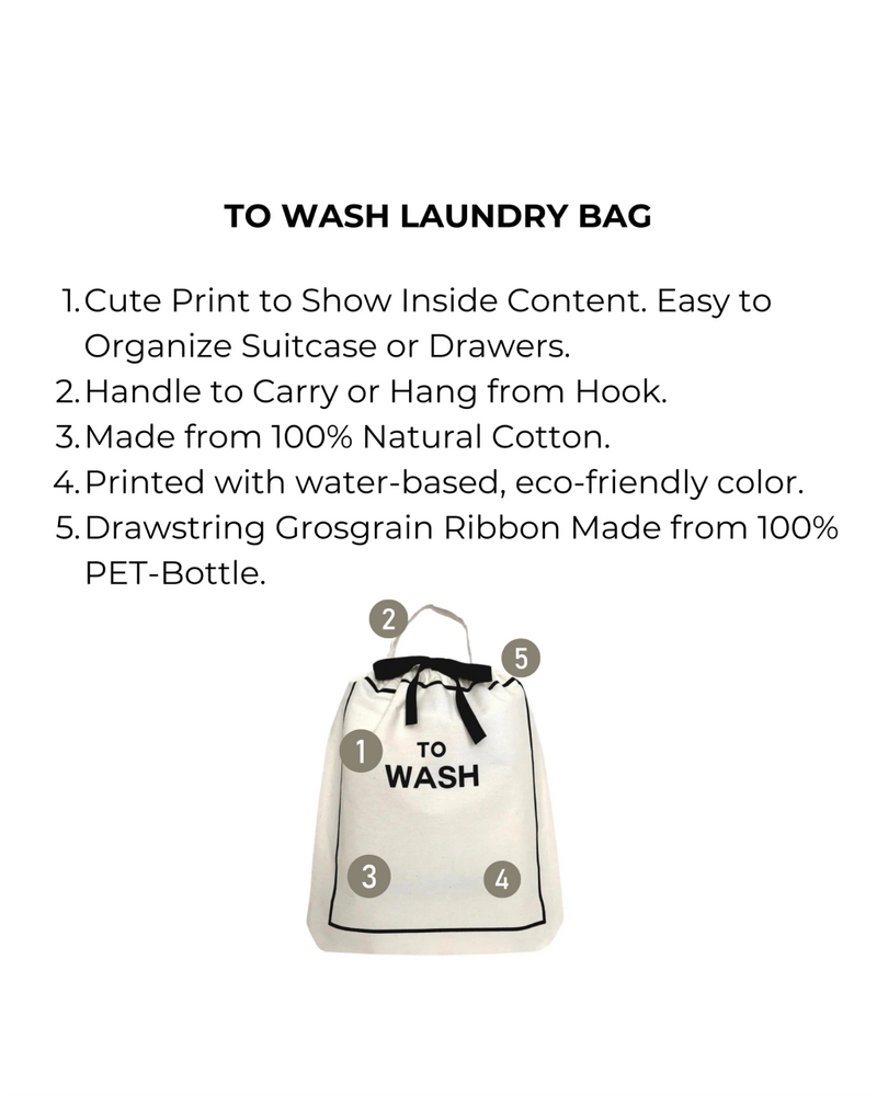 The To Wash Bag in cream is a stylish and practical way to separate dirty clothes from clean ones, whether at home or while traveling. Made from 100% natural cotton, it features a sturdy handle for easy carrying and a grosgrain drawstring made from recycled materials. Its sleek, unisex design makes it a perfect travel essential or gift. Pair it with the To Wear Bag for an organized packing experience.