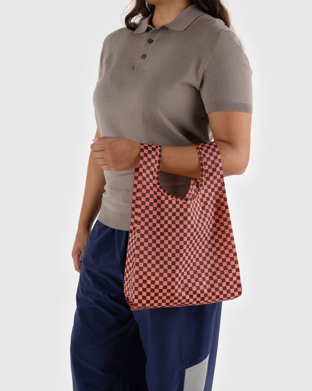 A smaller version of our best selling reusable shopping bag. Perfect for your lunch, a six pack, extra shoes, or a trip to the corner market. Folds into a flat 4 in. H x 4 in. W pouch. Holds 50 lbs.