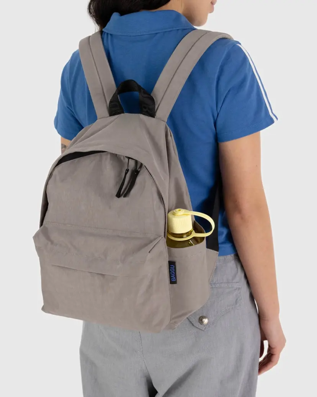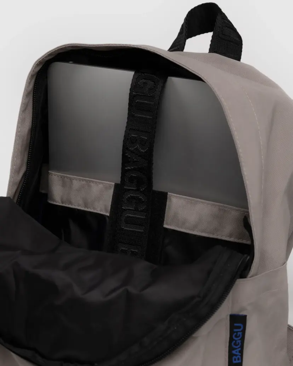 Fits all the essentials for work or school. Interior laptop sleeve with velcro closure that fits 13/14” laptop in puffy case. Lightweight, durable construction with padded, adjustable straps. Machine wash cold.