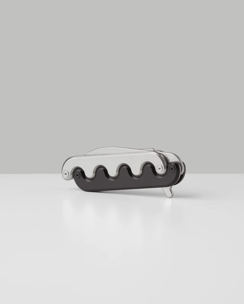 The product of a years-long collaboration with Chen Chen and Kai Williams, the Sidewinder is an enigmatic kinetic sculpture moonlighting as a knife. Named for the oscillating tracks left in the sand by its serpentine namesake, motion is at the core of the Sidewinder Knife’s design philosophy. Rather than a fixed handle, it has an interlocking mechanical hilt, with two opposing elements moving in sympathy with the blade itself to produce a truly unique unsheathing mechanism.