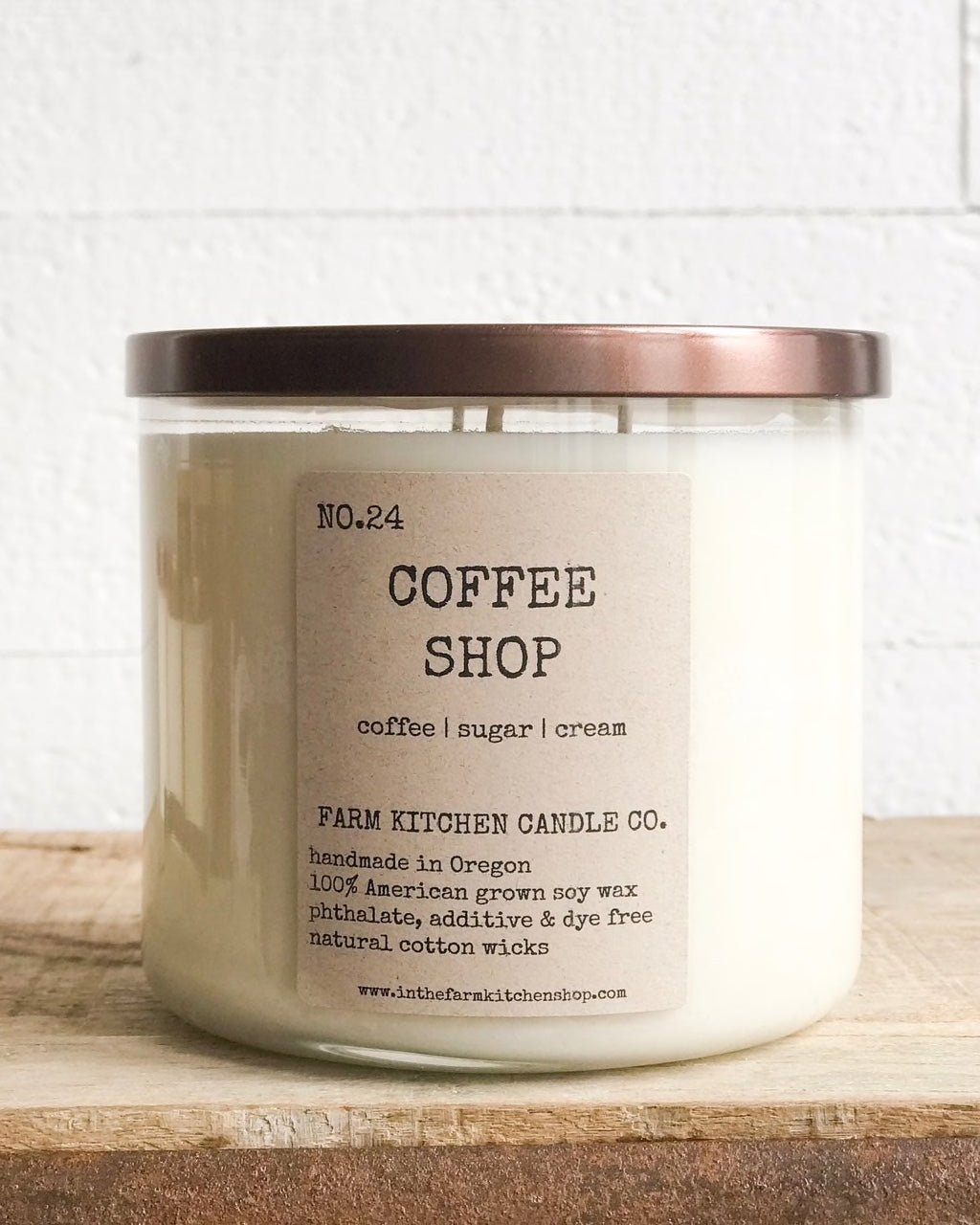 Our Coffee Shop soy candle is perfect for the coffee lover! This comforting, familiar fragrance of just-ground coffee beans has a touch of sugar and cream that adds the perfect amount of sweetness. Hand poured 100% soy wax candle is vegan, cruelty-free and phthalate free.