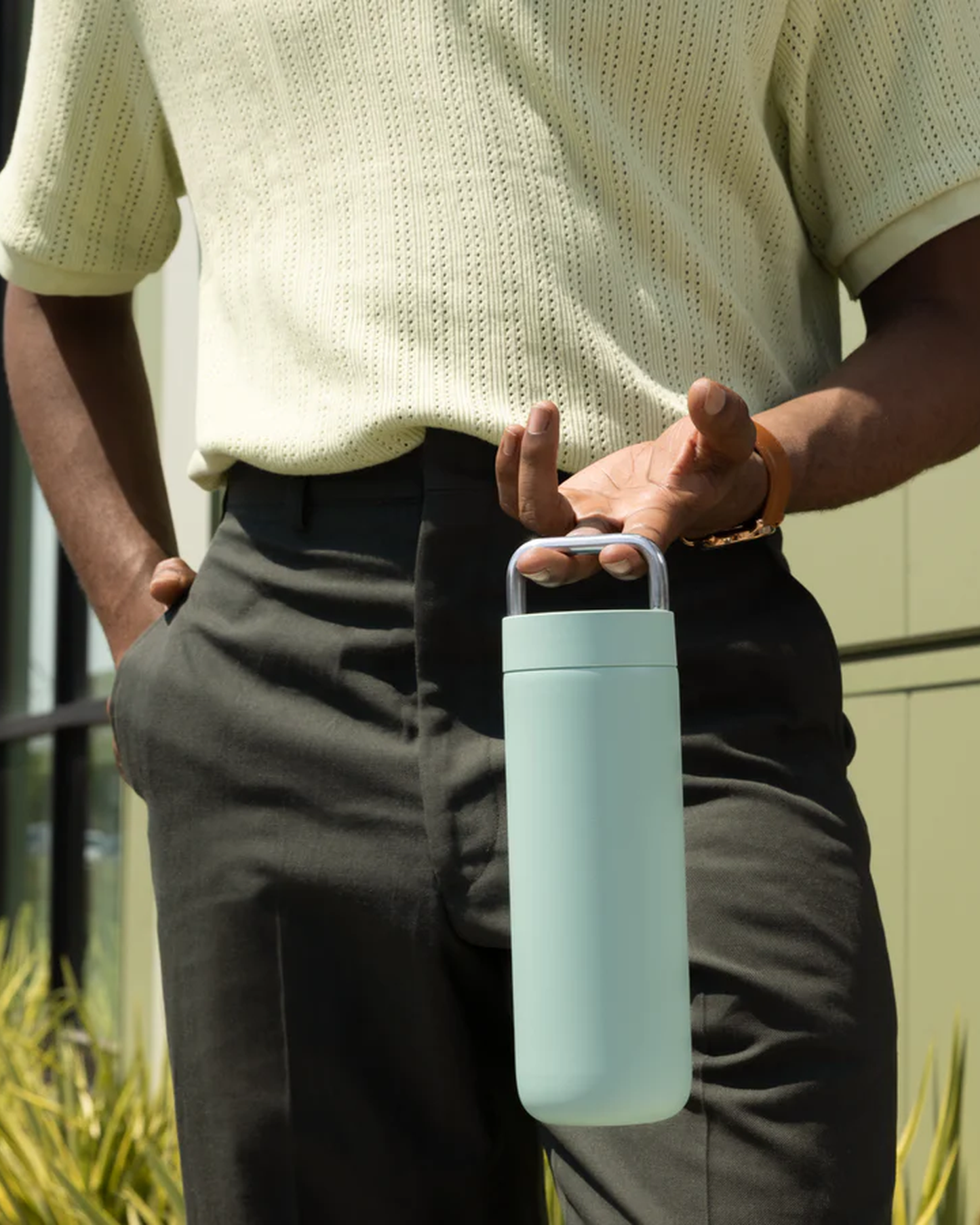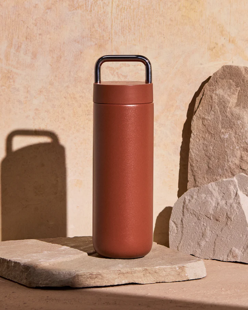 Meet the maxi-mug for the minimalist. Take 20 ounces to-go in this elegant insulated tumbler, featuring True Taste ceramic coating, a thin sippable lip, and a premium metal handle that’s both easy to carry and easy on the eyes.