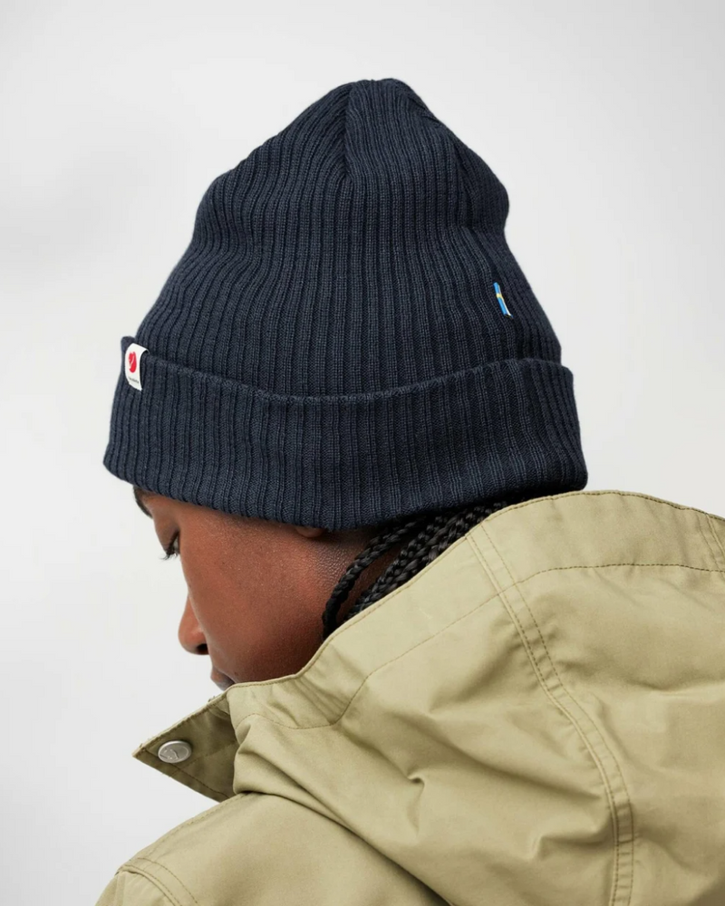 Soft, comfortable rib-knitted hat made from recycled polyester. Fjällräven Rib Hat has an attractive rib-knitted structure with wide fold up edge. The polyester knit wicks away moisture and dries fast, making it suitable for both everyday life and activities in the mountains.