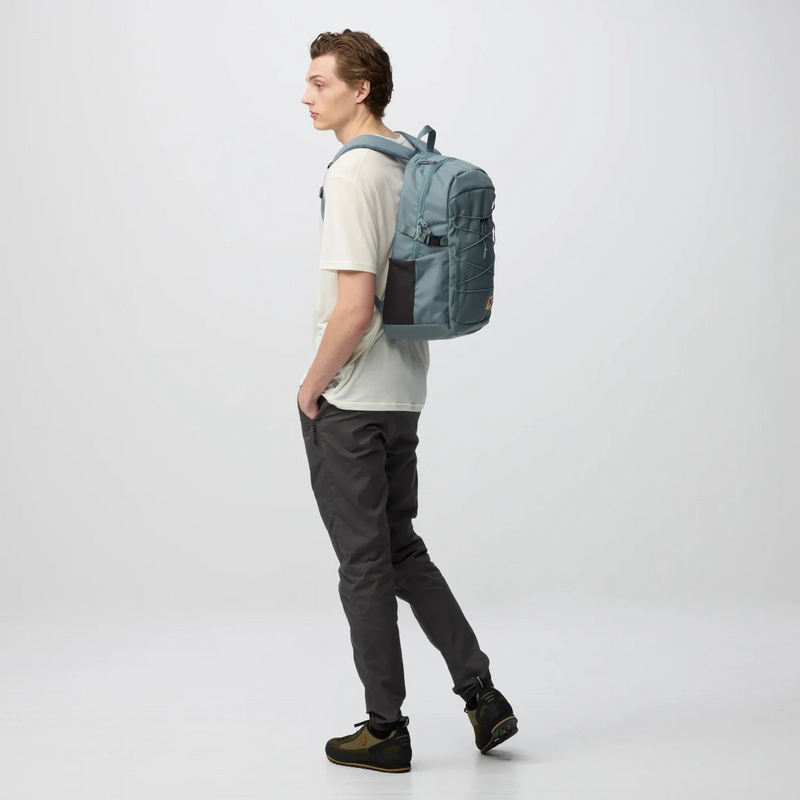 Robust and versatile backpack with large main compartment featuring a raised and padded laptop sleeve and zippered mesh pocket. Skule 24 features durable Oxford fabric made from 600D recycled polyester with a 1500mm PU coating and has useful pockets including an outside zippered pocket with key clip and stretch side pockets to help keep your gear in order. Perfect for light hikes, everyday use and commuting.