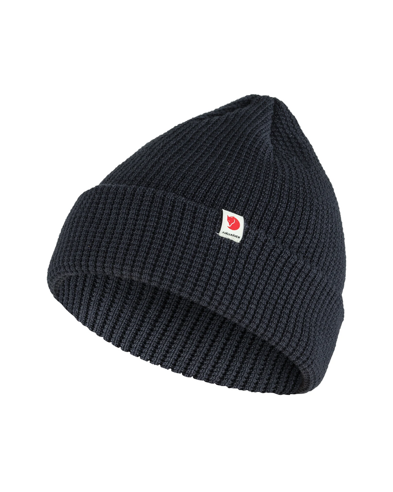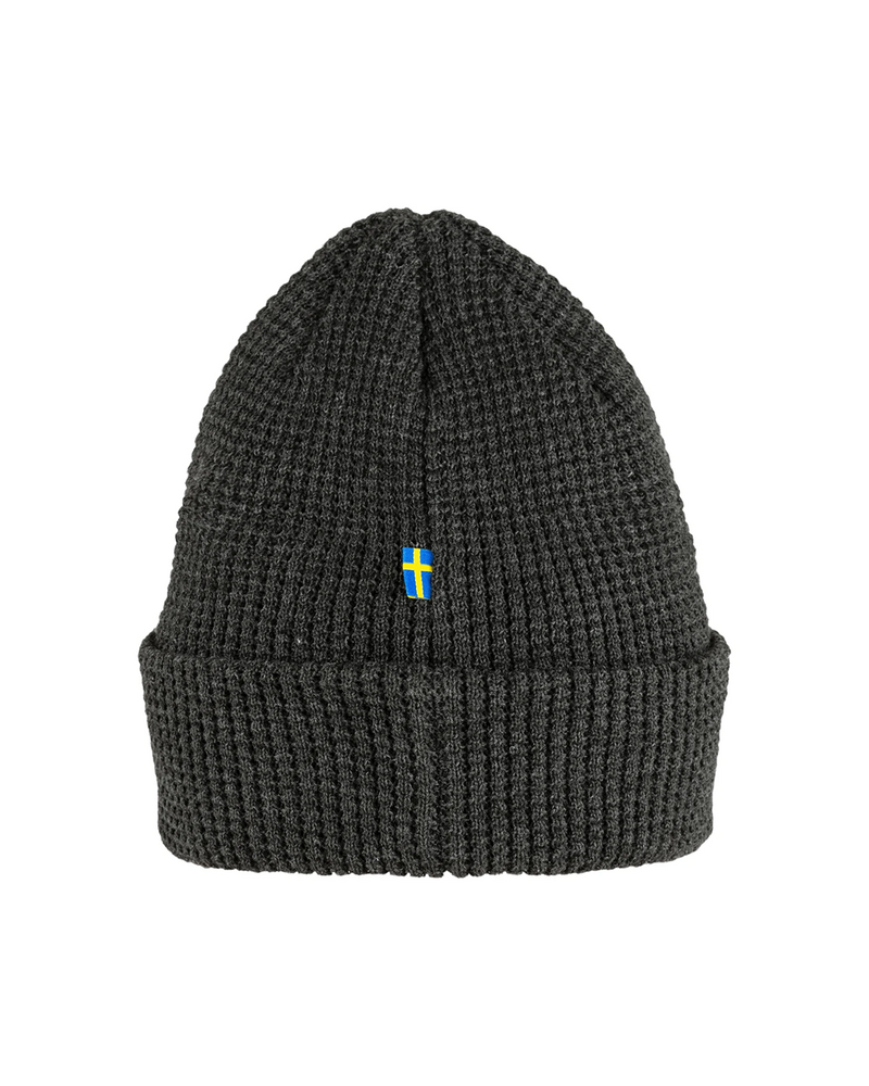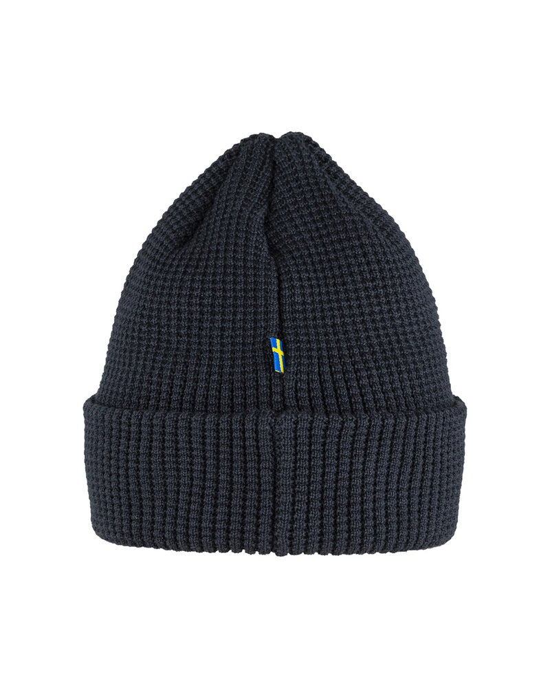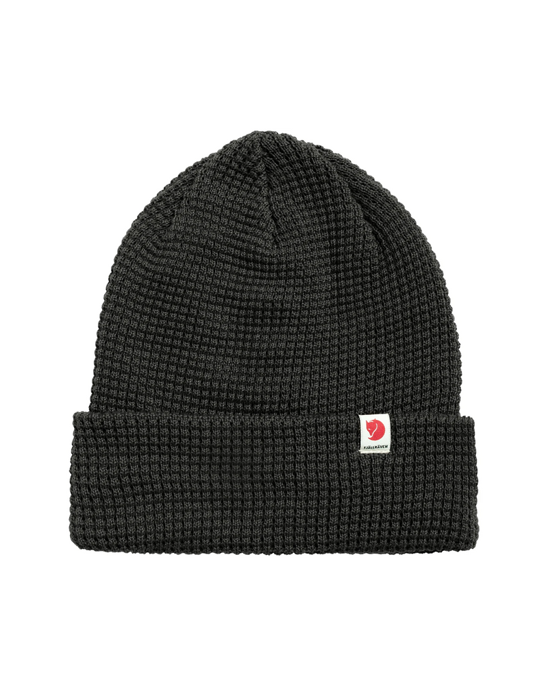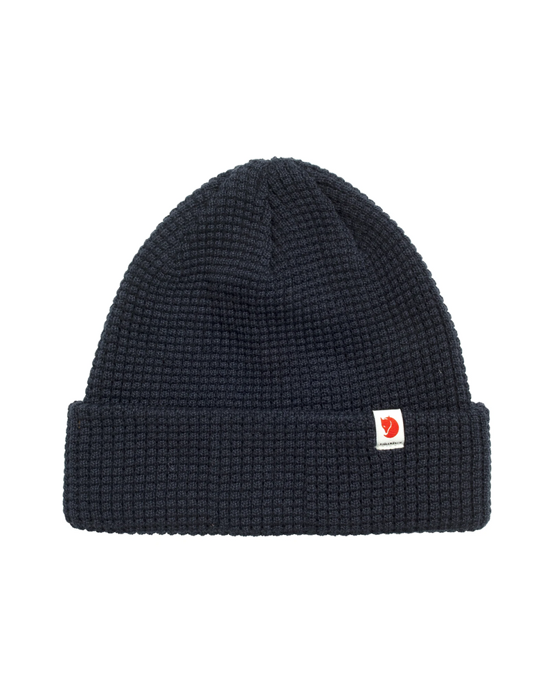 Soft, comfortable knitted hat in recycled polyester. Decorative waffle-knit with wide fold-up edge and little textile logo tab. The material wicks away moisture and dries fast, so it works well for both everyday life and when out in the mountains.