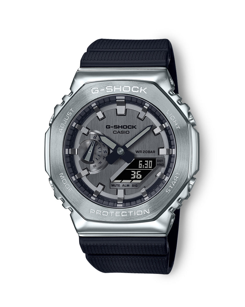 Go sleek, sharp and bold with the new black band and silver stainless steel bezel GM2100-1A in a metal-clad octagonal take on the original iconic design.