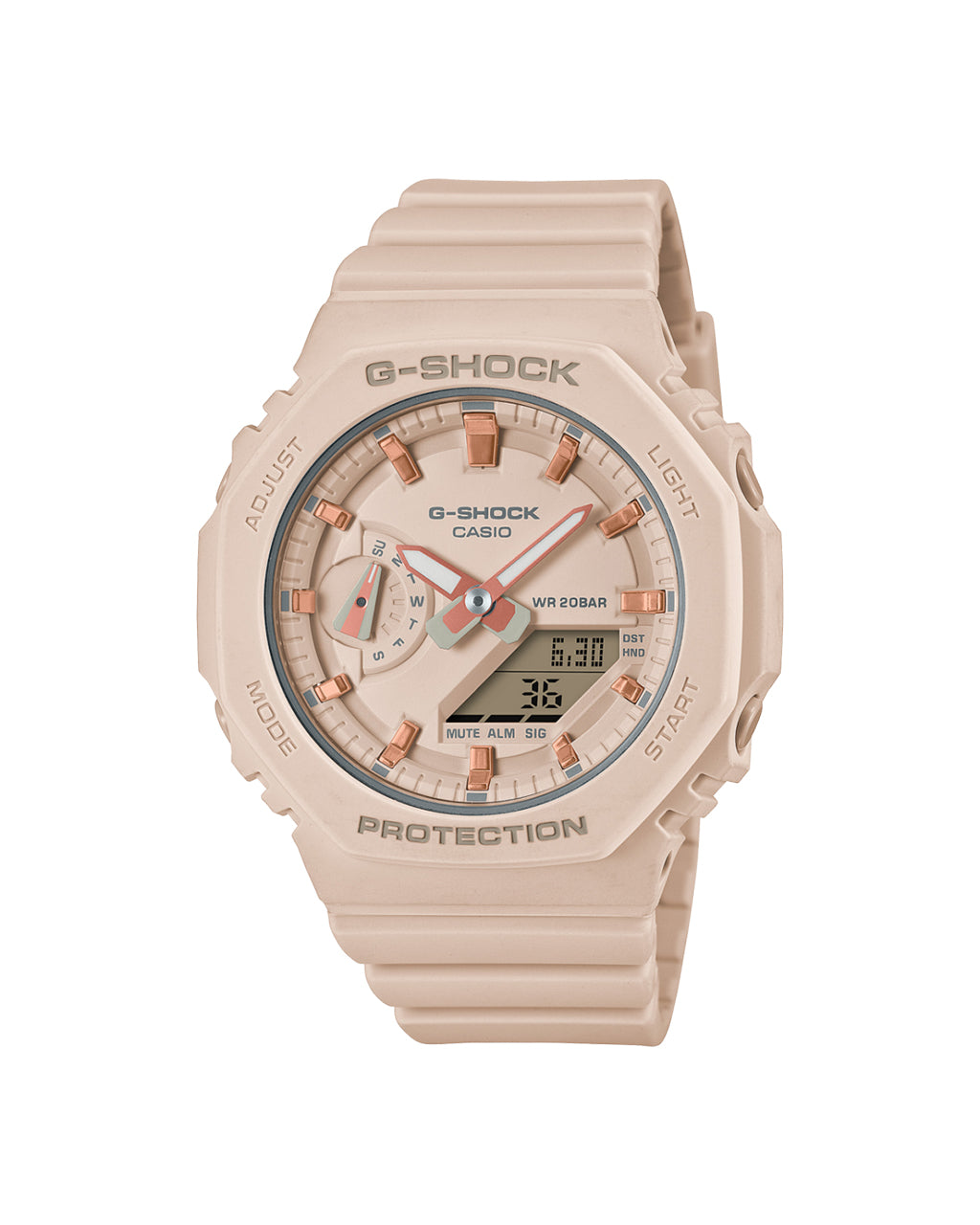 This series downsizes the GA2100 to create a simple and slim design. The octagonal bezel, flat face, simple bar hour markers, and carbon core guard structure that are distinctive features of the GA2100 are now available in a compact configuration.