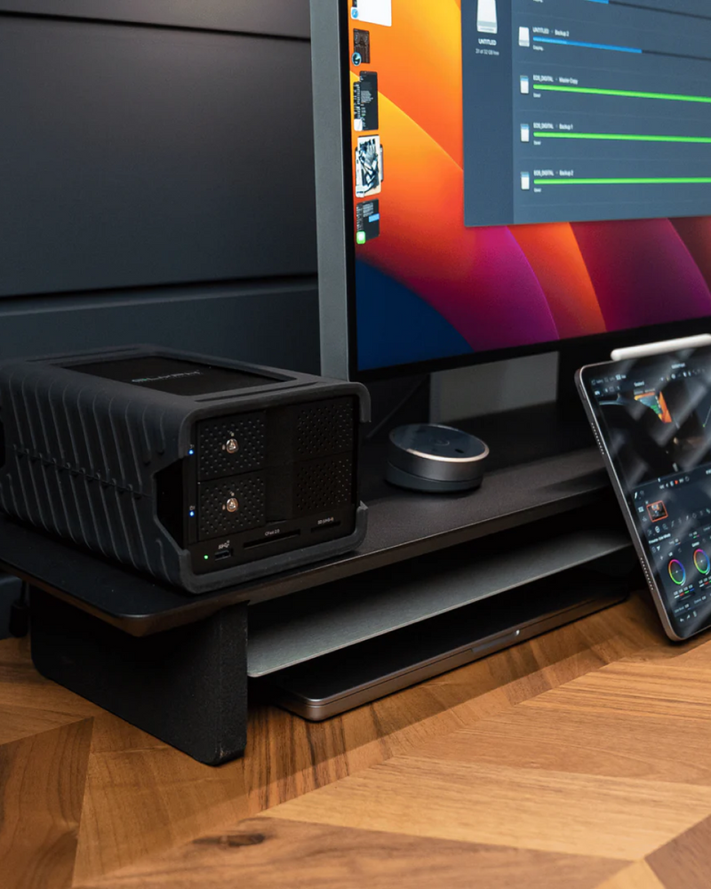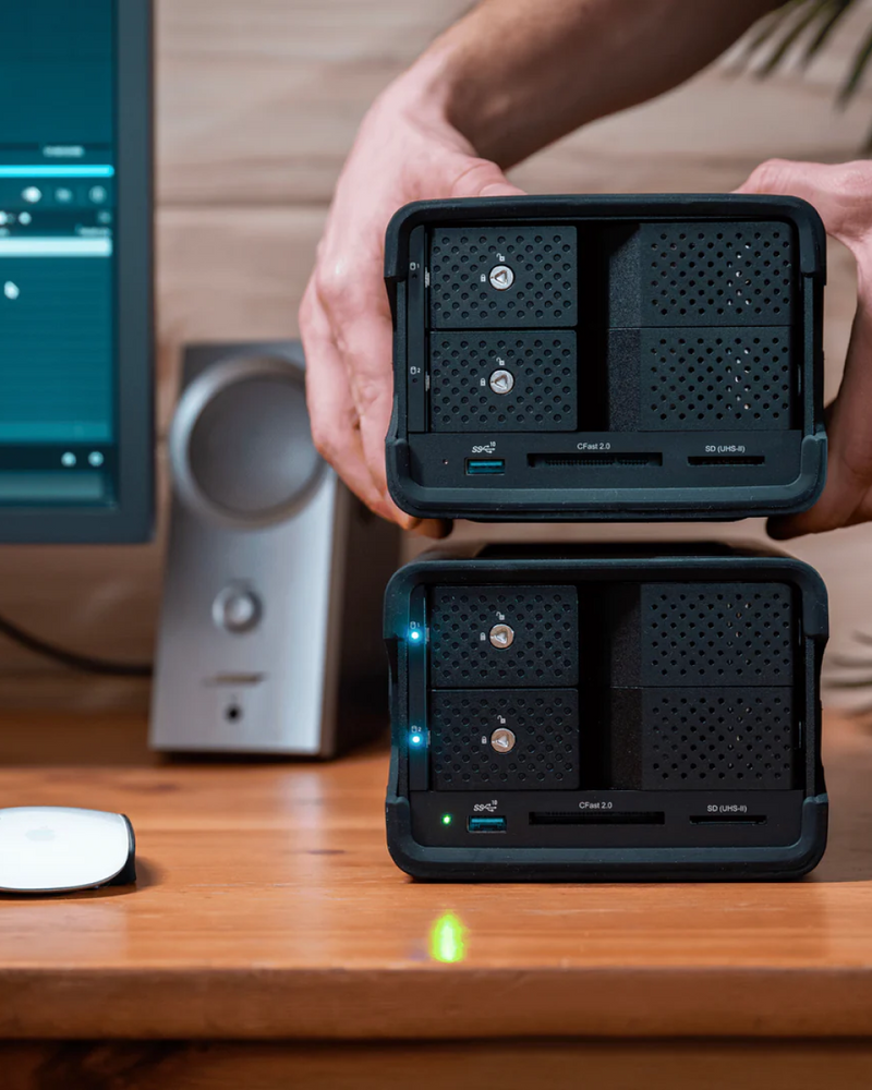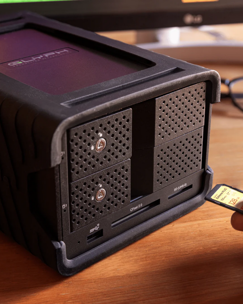 Professional Dual-Drive RAID Solution-SHIPS IN RAID-0. The Glyph Blackbox PRO RAID is a high-performance, ultra-reliable hardware RAID powered by USB-C (10Gb). Available with an optional card reader / hub combo to streamline media ingest or charge / connect peripherals. Whether you're in studio or at home, Glyph Blackbox PRO RAID is the ultimate workflow solution.