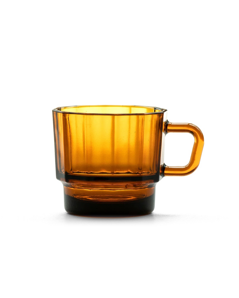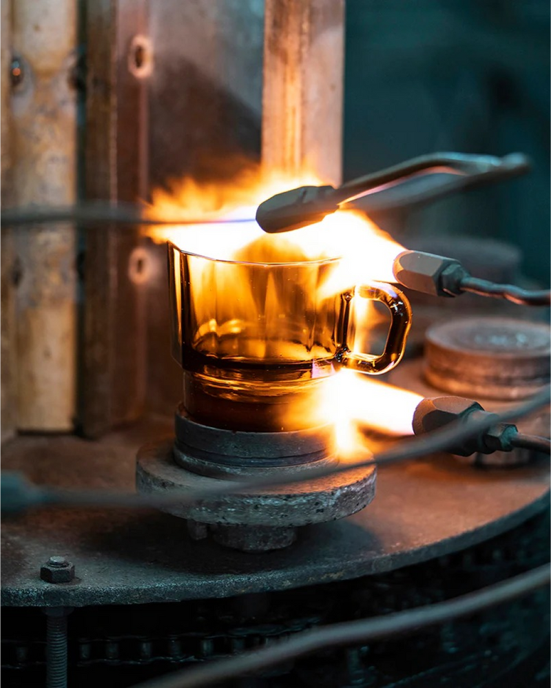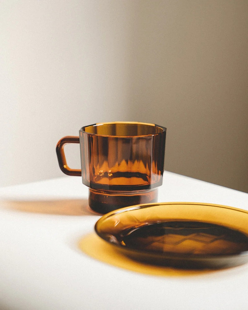 Utilizing glass-dyeing technique, W Glass is given unique colors, creating one-of-a-kind aesthetics through the inter-reaction of the glass, light, and contained beverage. W glass has a heat-proof handle, easy stacking tapered bottom, and smooth circular inner surface for easy cleaning. Savor a cup of coffee with more leisure and elegance, and enjoy the prospects of circular economy and environmental friendliness.