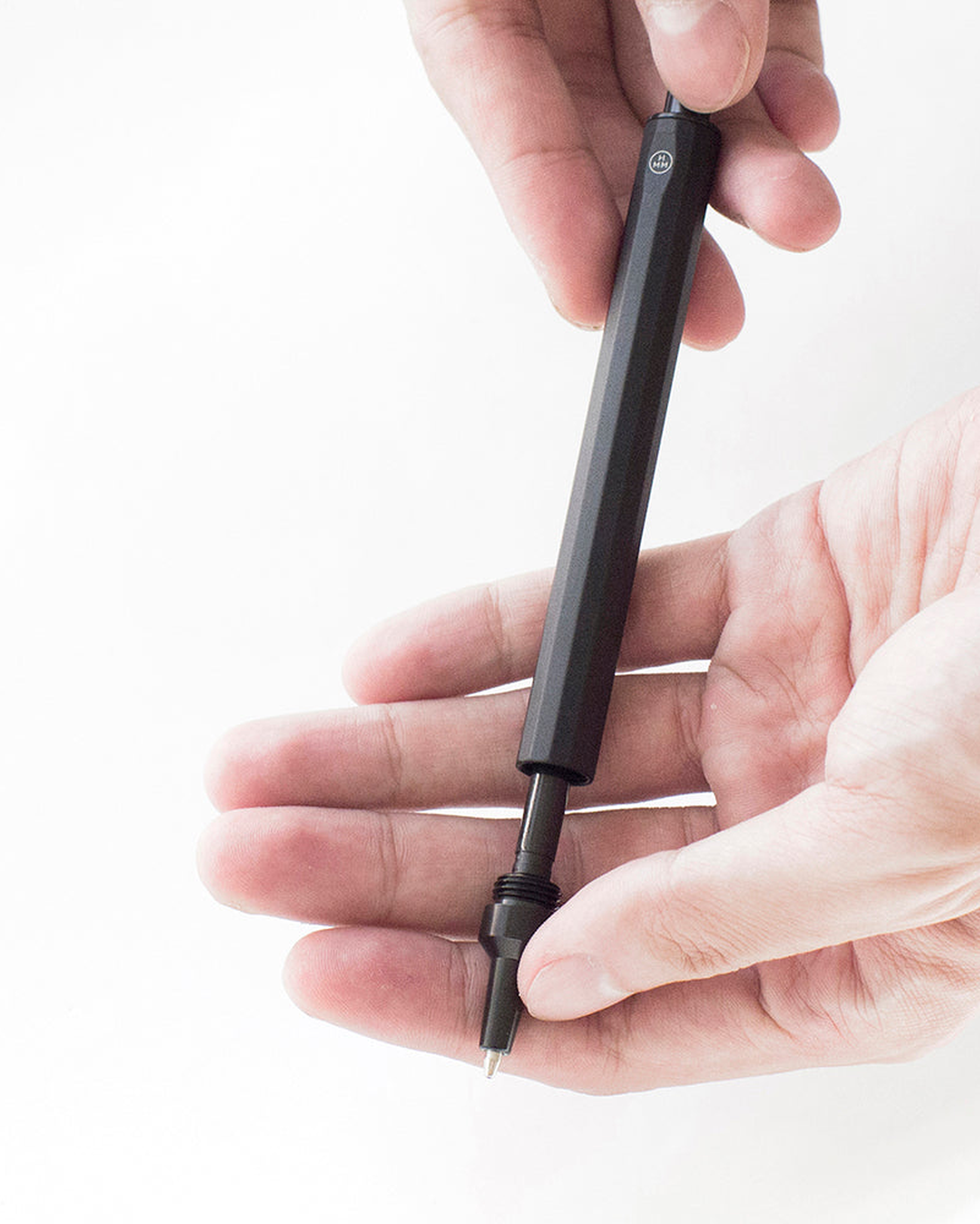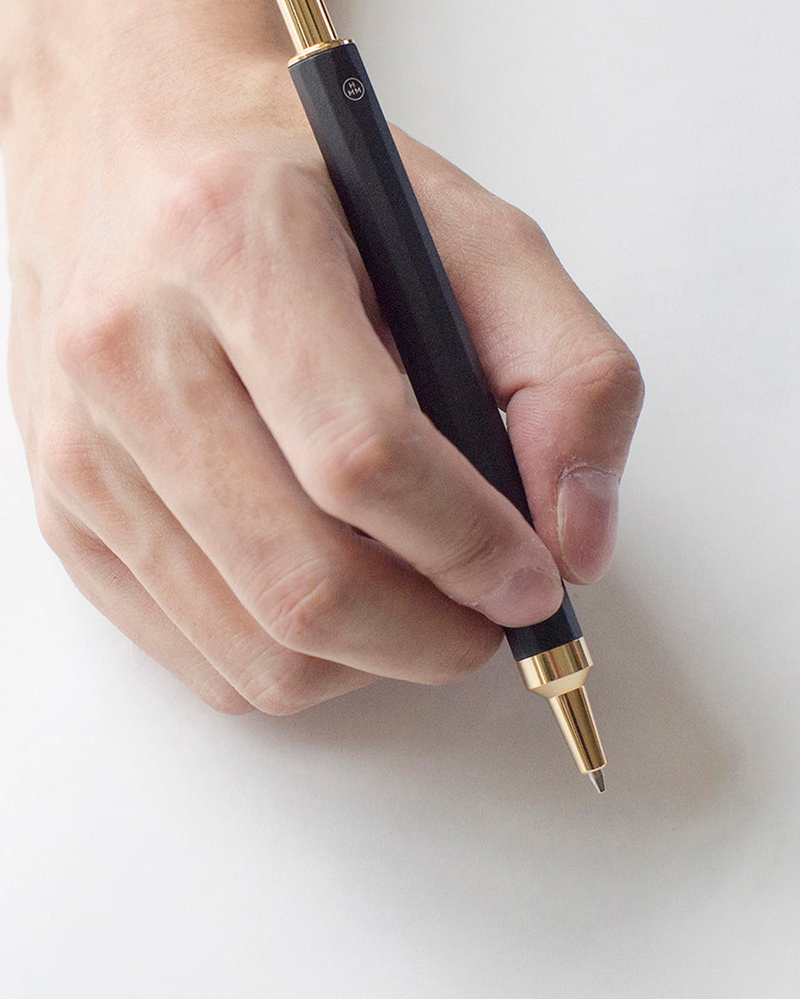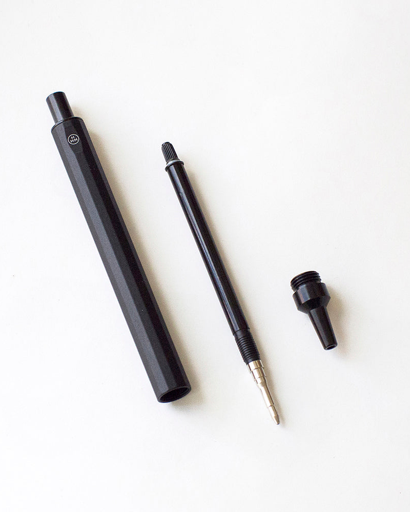 Weighted and balanced with a complete metal construction, the HMM Pencil is ideal for both writing and sketching. The dodecagonal barrel provides a comfortable grip and keeps it from rolling away. The HMM Pencil comes in 0.7mm leads.