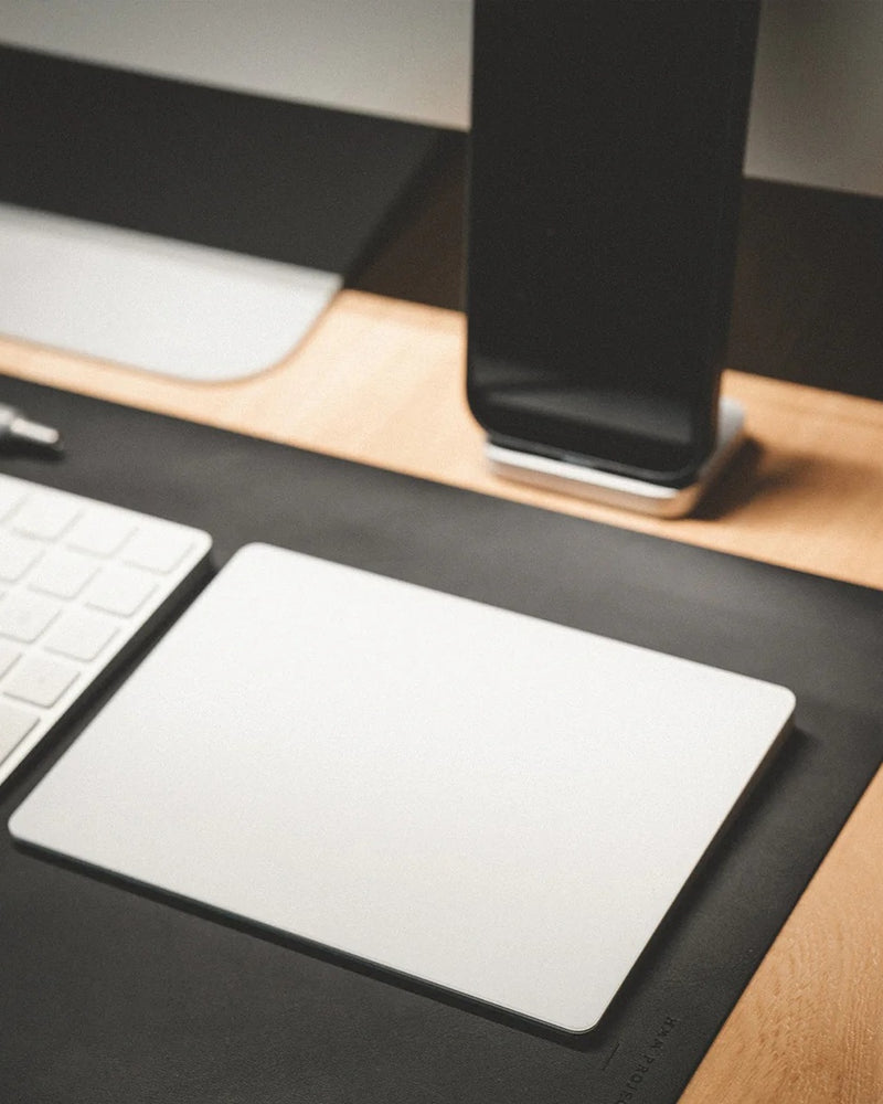 The HMM Working Mat is the perfect desk mat for separating focus from relaxation, ideal for laptop use or as an office mat. Crafted from premium vegan leather, it provides a smooth surface for swift mouse and pen movements while offering a non-slip reverse side, perfect for glass, metal, and wood desks.