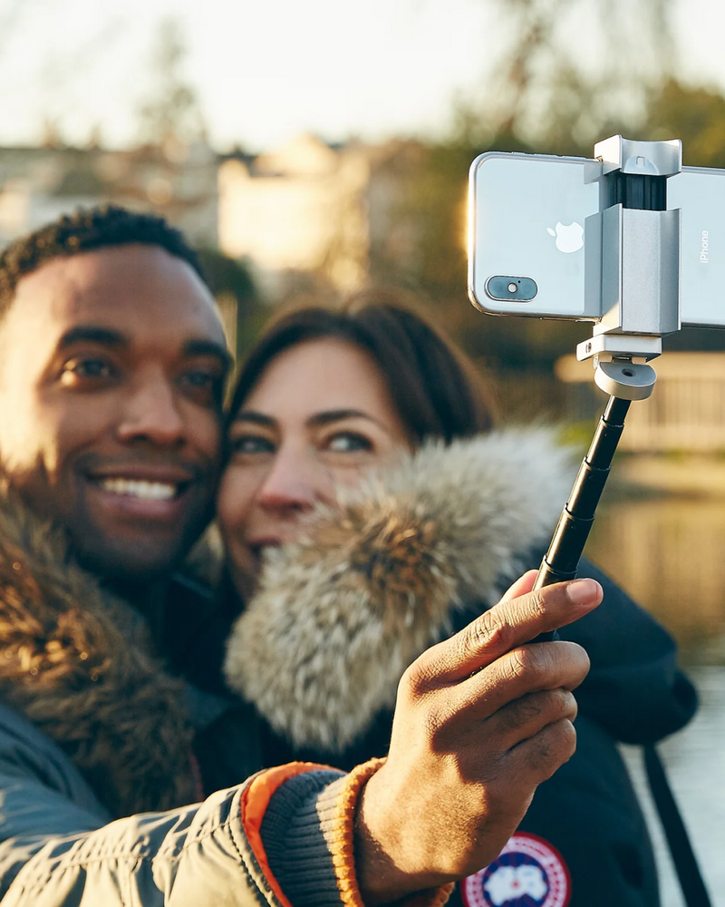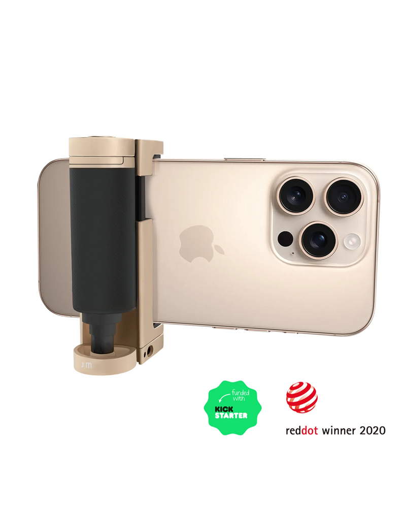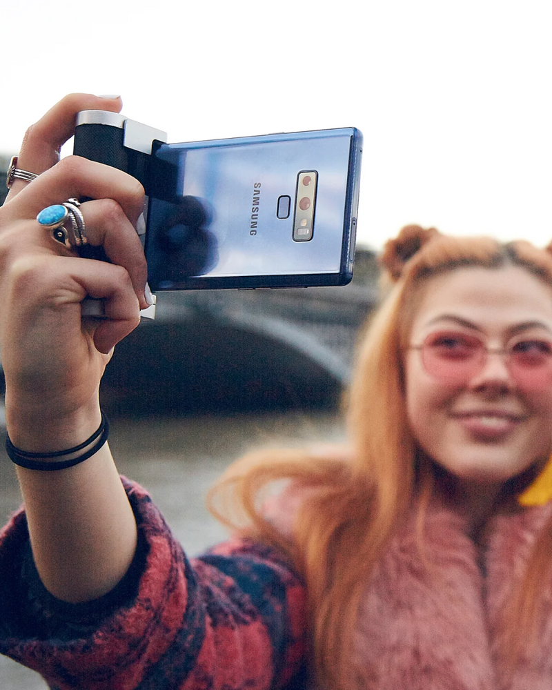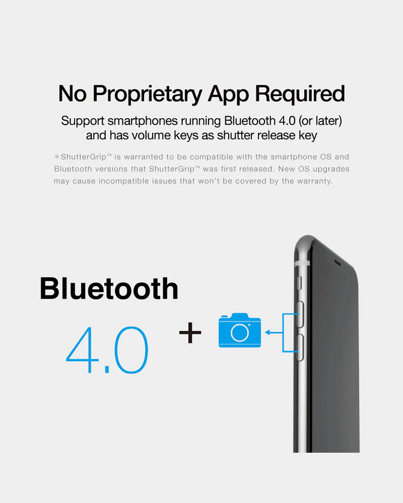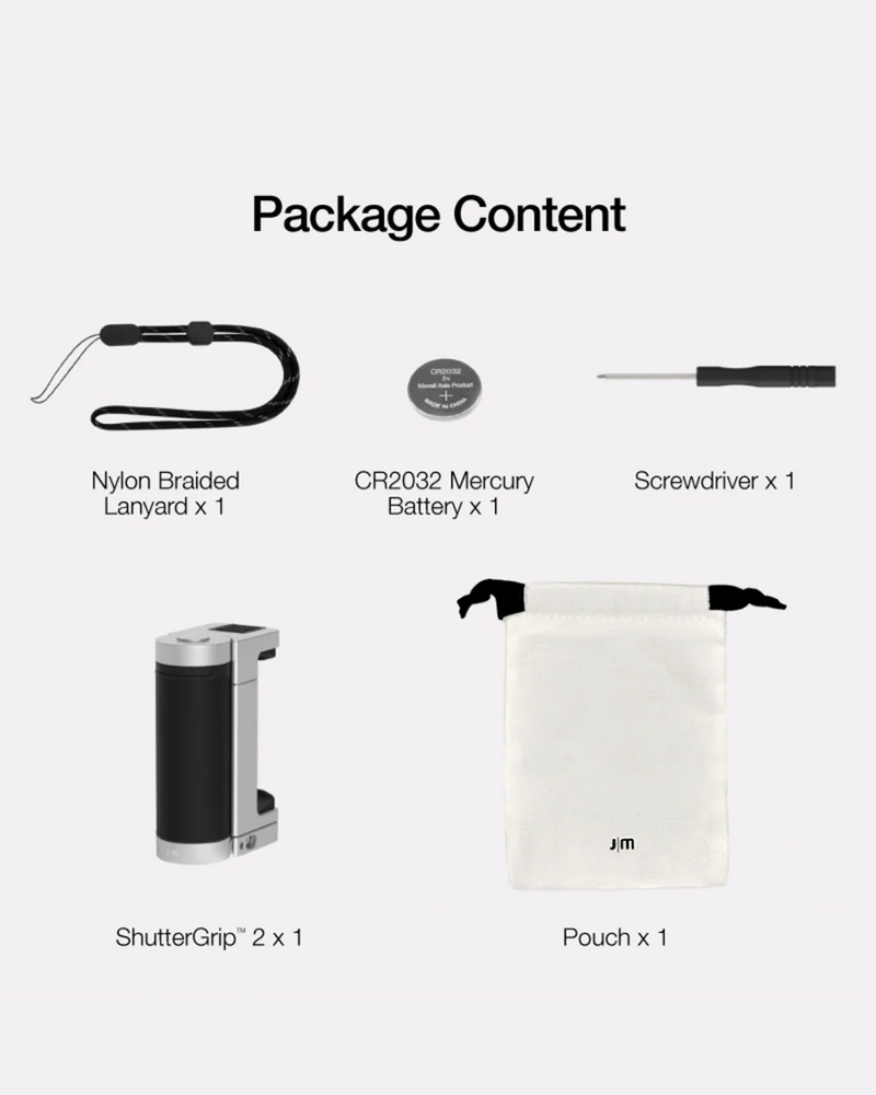 The Bluetooth Pocket-Size Transforming Grip for mobile photography and content creation. ShutterGrip 2 instantly transforms your smartphone into a serious shooting tool. Its spring-loaded, tensioned grip attaches securely to almost any smartphone — with or without a case — providing a stable, non-slip handle and a built-in Bluetooth remote shutter. Designed for maximum versatility, ShutterGrip 2 functions as a camera grip, video grip, phone stand, and even includes a built-in selfie stick. It also features a cold shoe mount, standard tripod thread, and multi-directional rotation for shooting from creative angles in both portrait and landscape orientations. Compact and travel-friendly, it's the ultimate tool for street photography, vlogging, and everyday mobile shooting.