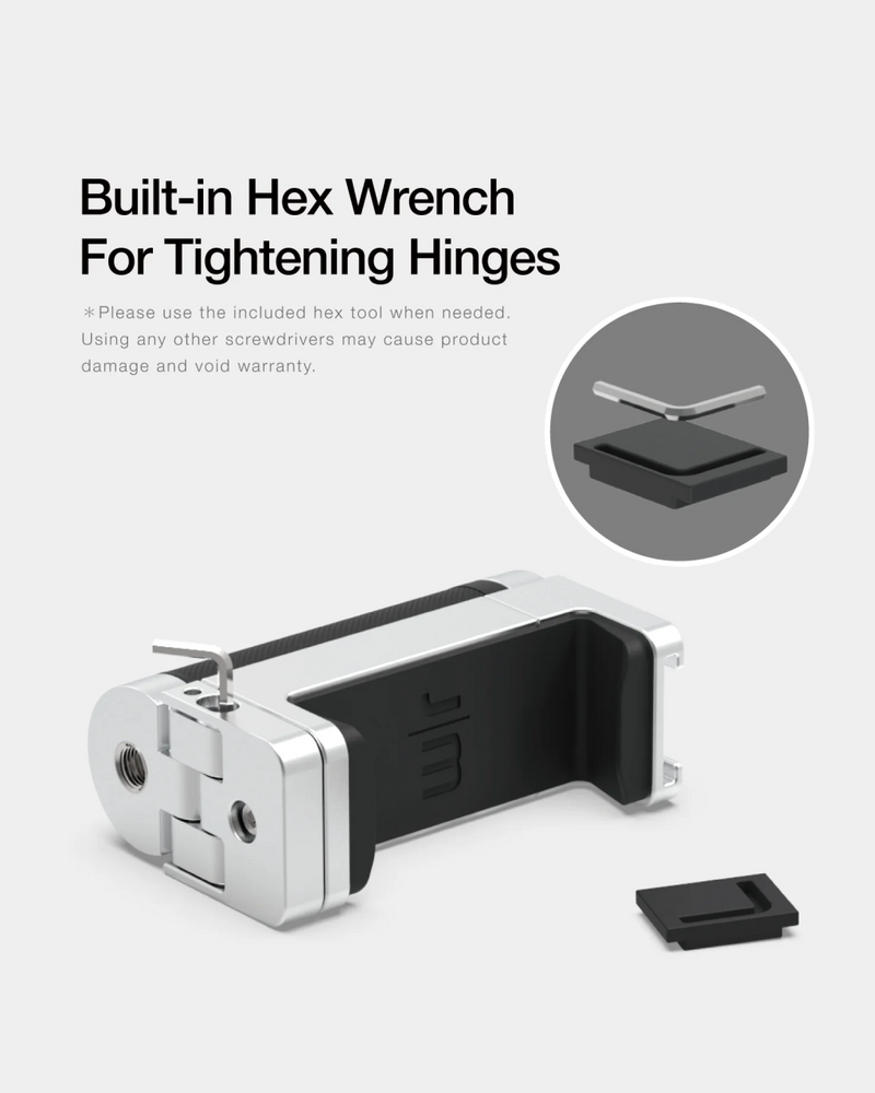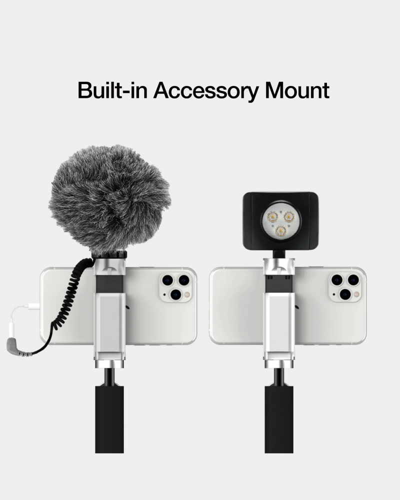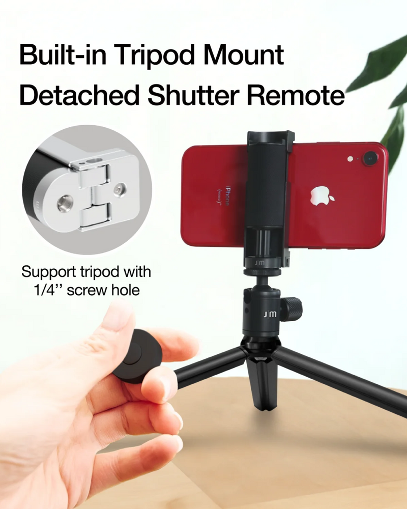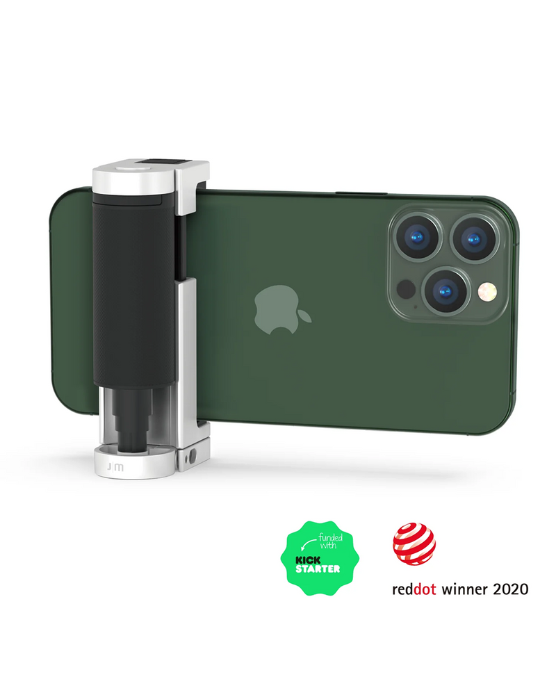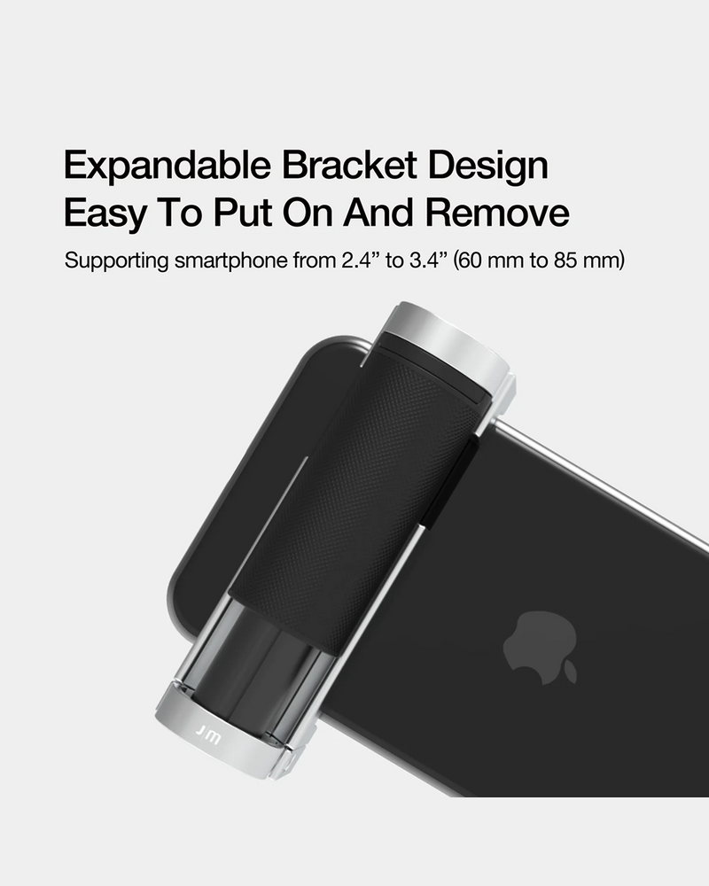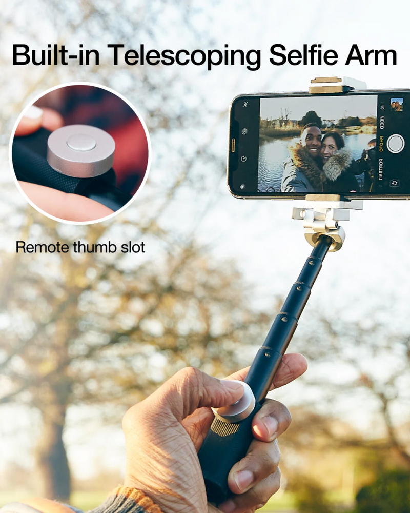 The Bluetooth Pocket-Size Transforming Grip for mobile photography and content creation. ShutterGrip 2 instantly transforms your smartphone into a serious shooting tool. Its spring-loaded, tensioned grip attaches securely to almost any smartphone — with or without a case — providing a stable, non-slip handle and a built-in Bluetooth remote shutter. Designed for maximum versatility, ShutterGrip 2 functions as a camera grip, video grip, phone stand, and even includes a built-in selfie stick. It also features a cold shoe mount, standard tripod thread, and multi-directional rotation for shooting from creative angles in both portrait and landscape orientations. Compact and travel-friendly, it's the ultimate tool for street photography, vlogging, and everyday mobile shooting.