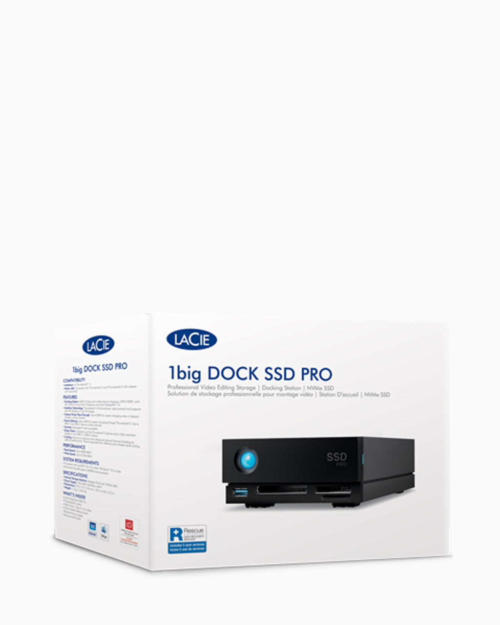 • Included: 1big Dock SSD Pro, Thunderbolt 3 cable (USB 3.1 capable), FireCuda NVMe SSD, External power supply, Quick install guide