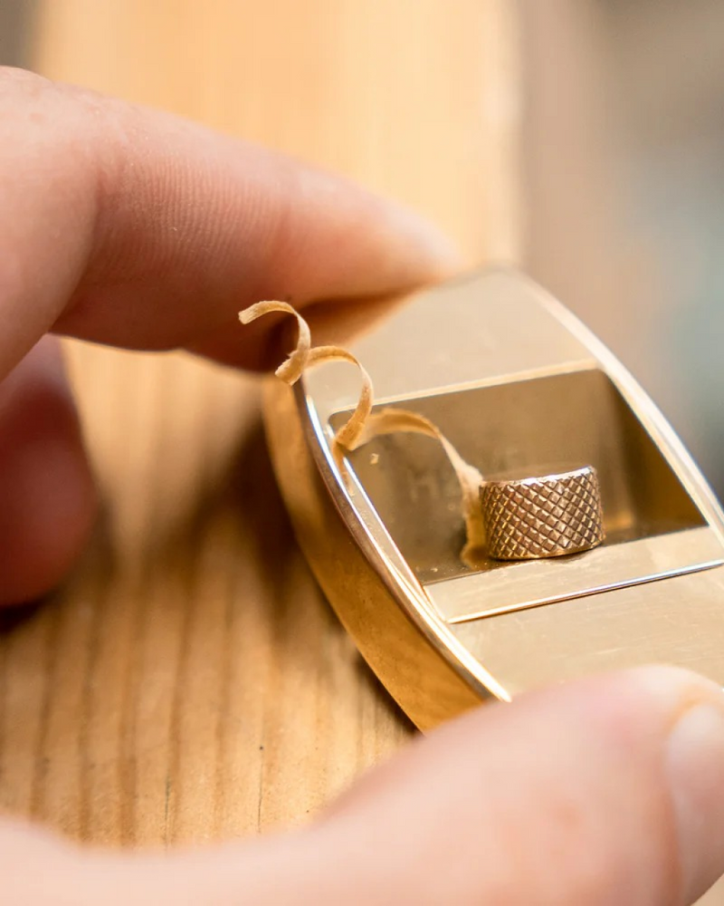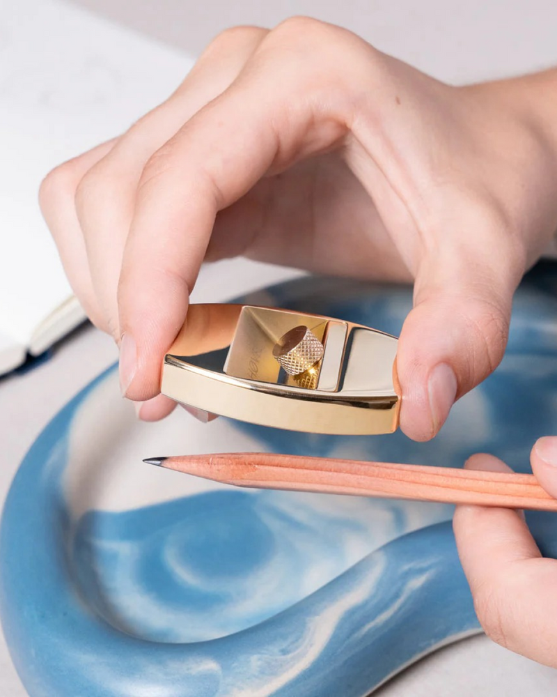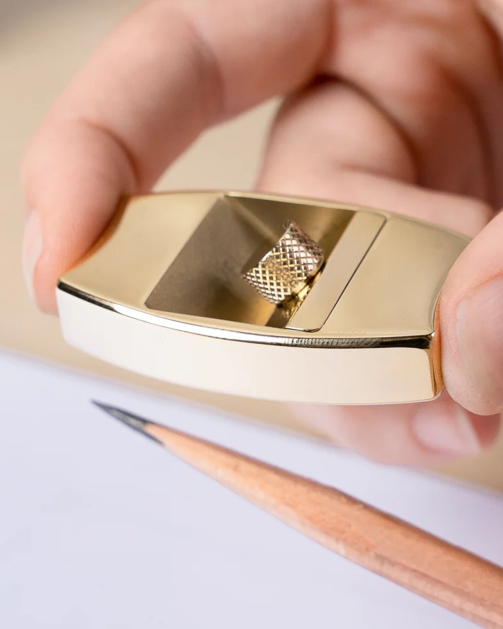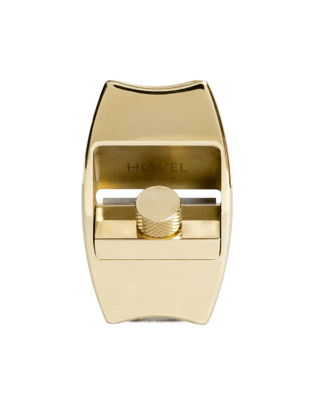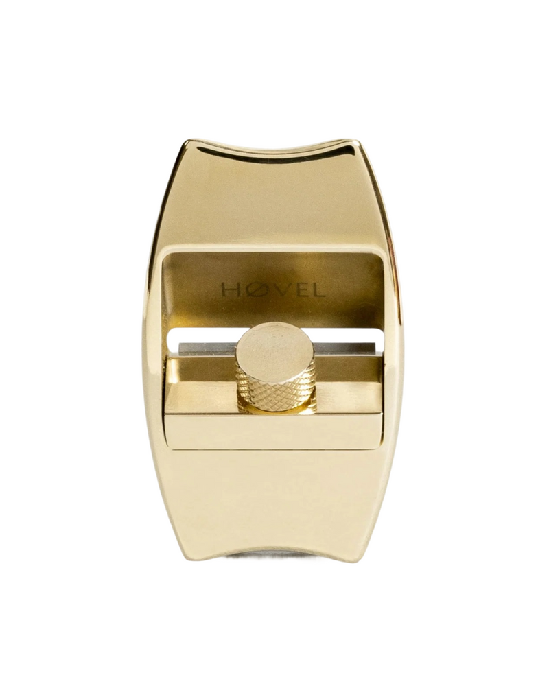 Høvel is an entirely reimagined pencil sharpener. Høvel pencil plane enables you to whittle your pencil perfectly to any desired point. Its unique mechanism also helps to not break the lead of your pencil, unlike the commonly used sharpener, which twists and snaps graphite. Due to its solid brass body, its weight is a joy, and it gains beauty and character with age. Please note the base is sold separately.