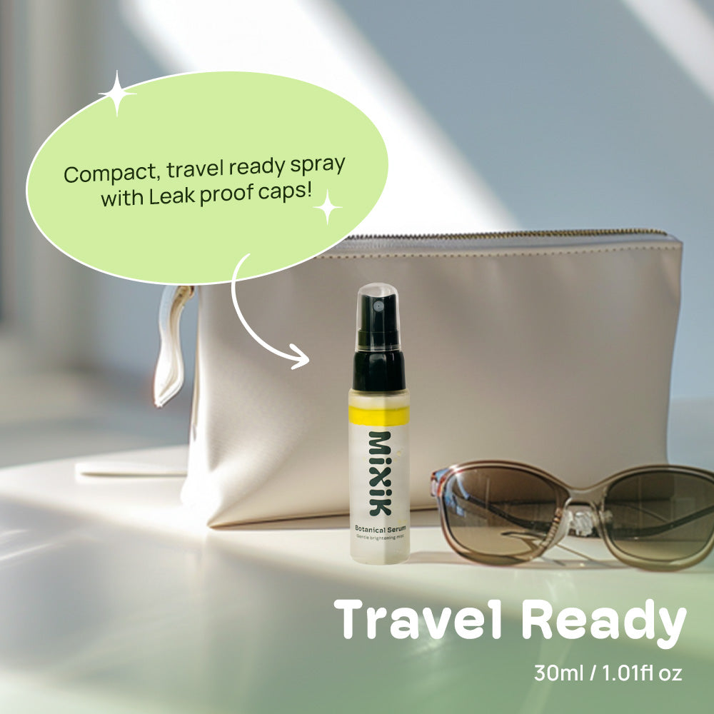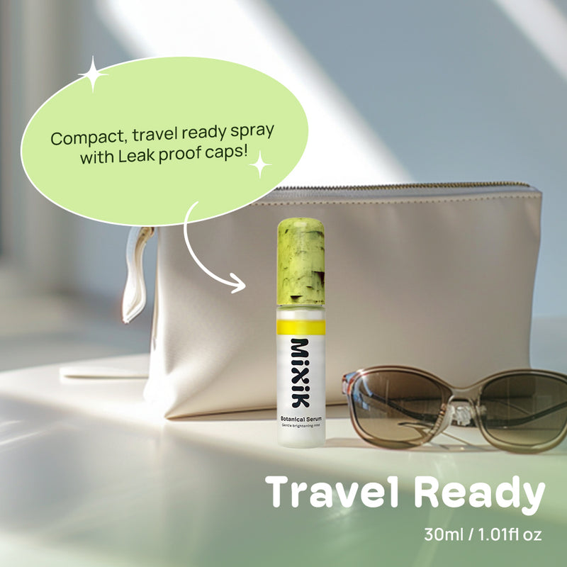 Take your glow wherever you go with MIXIK's Travel Size Botanical Serum Mist. In a sleek 30 ml bottle, it's your skin's partner for nourishment and radiance, no matter the journey.