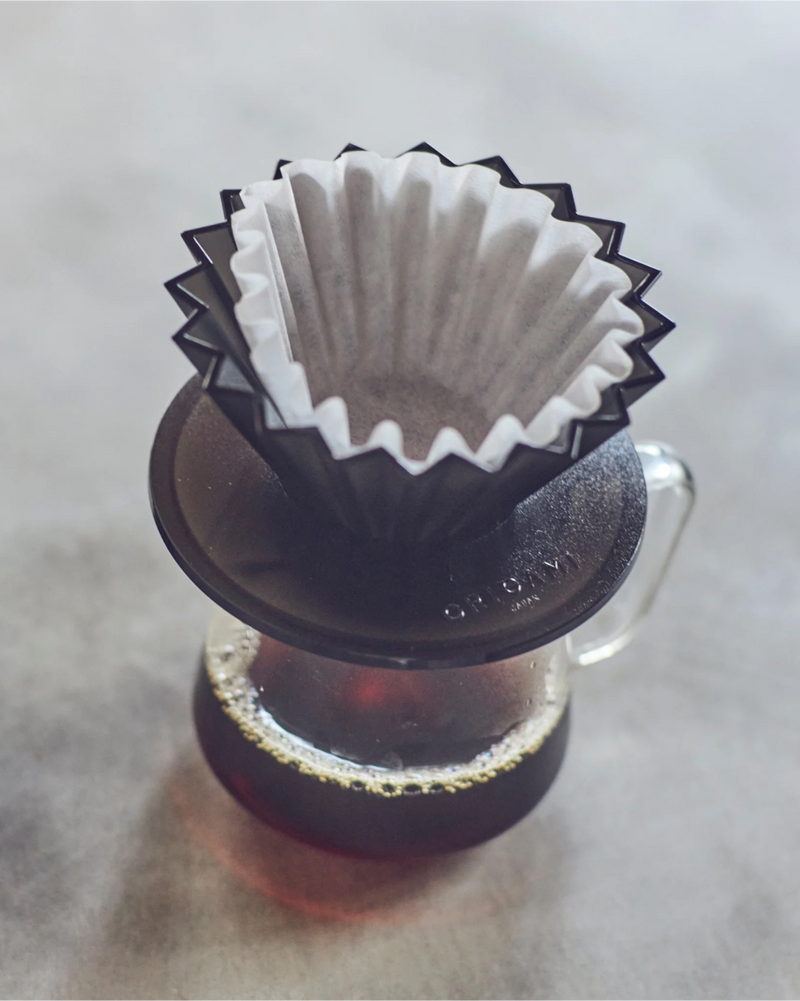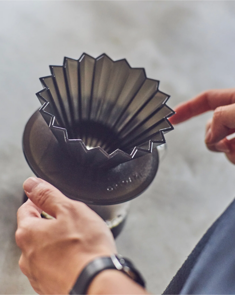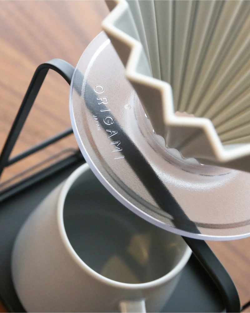 ORIGAMI Dripper A special resin holder designed for both S and M sizes. This is a special plastic holder designed to fit both ORIGAMI Dripper S and M sizes. It is designed to fit the 20 grooves on the dripper and keeps the dripper horizontal for more stable coffee extraction.
