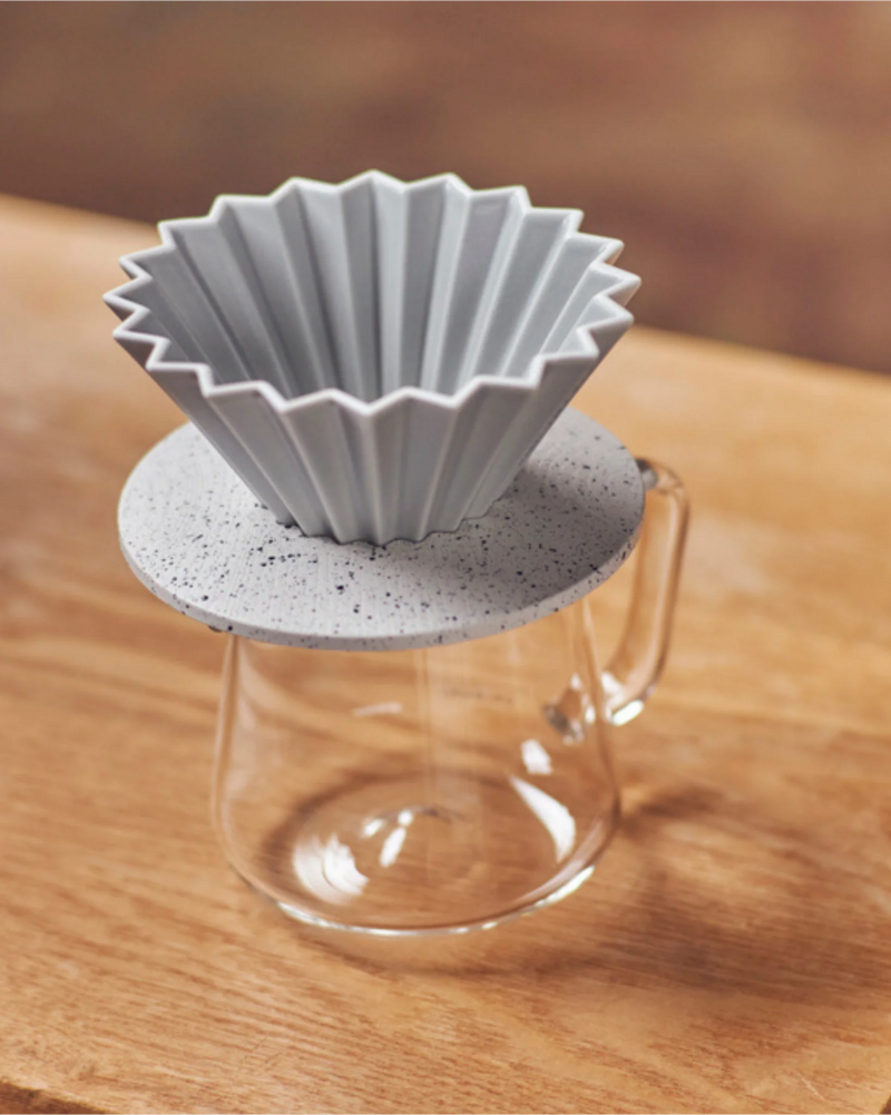 Resin dripper holder with wood grain design. The holes are designed to fit the 20 ribs of the dripper, keeping the dripper horizontal for stable extraction. This is a highly practical item that blends well with interior decor. It is made of 50% PET resin, which is made from recycled plastic bottles. Since the White x Black dots are blown by hand one by one, there are individual differences and they may differ from the product image. Please understand this in advance.