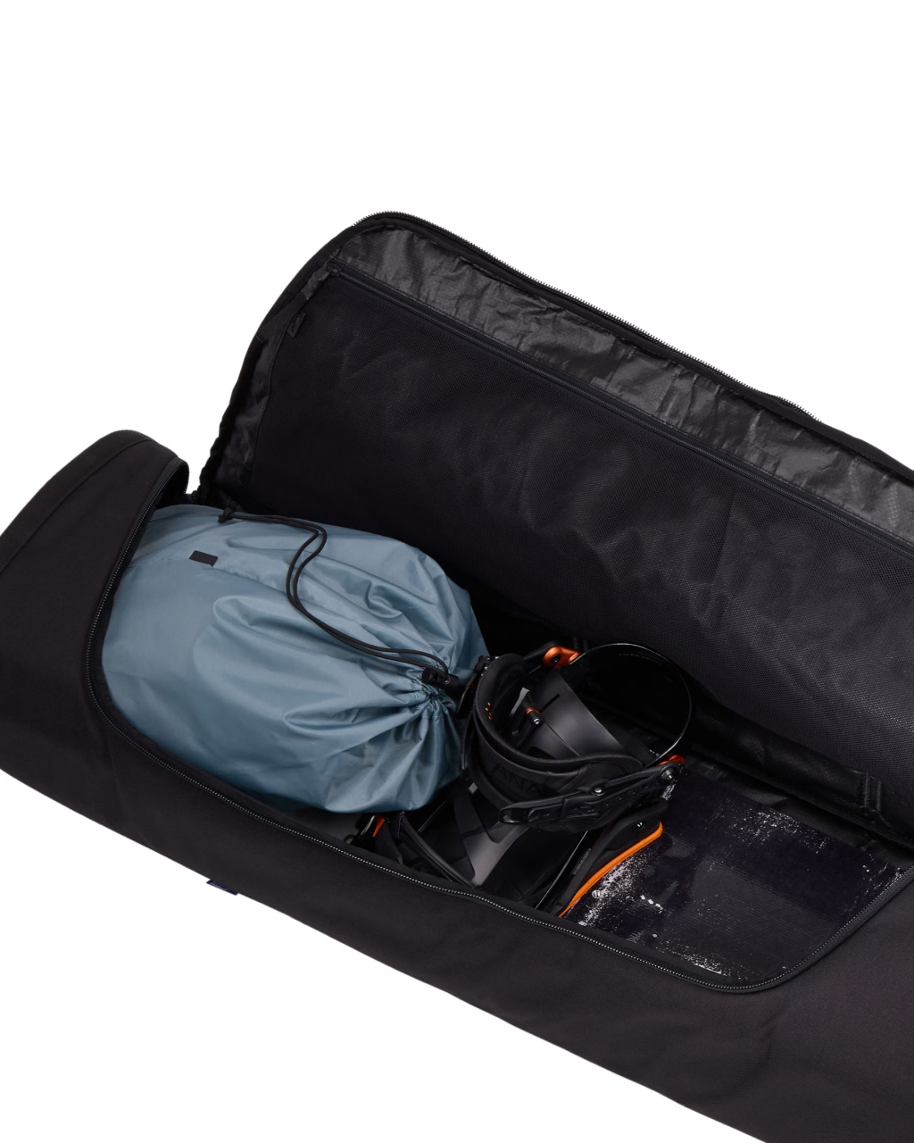 A spacious snowboard bag with padded, cinch-top snowboard sleeves to ensure your boards travels safely to each destination. This bag is bluesign® certified to ensure the protection of workers, consumers, and the environment. Effortlessly travel with your snowboard using this Thule RoundTrip snowboard roller. The bag has padded, cinch-top snowboard sleeves that protect the boards as well as compression straps to stop them from jostling about in transit. This bag fits two snowboards up to 165 cm in length plus boots.