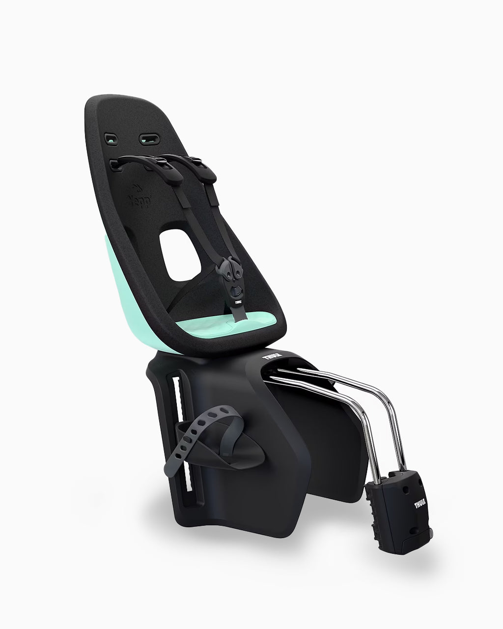 Lightweight and safe rear-frame-mounted child bike seat with a contemporary design, providing premium comfort for your child.