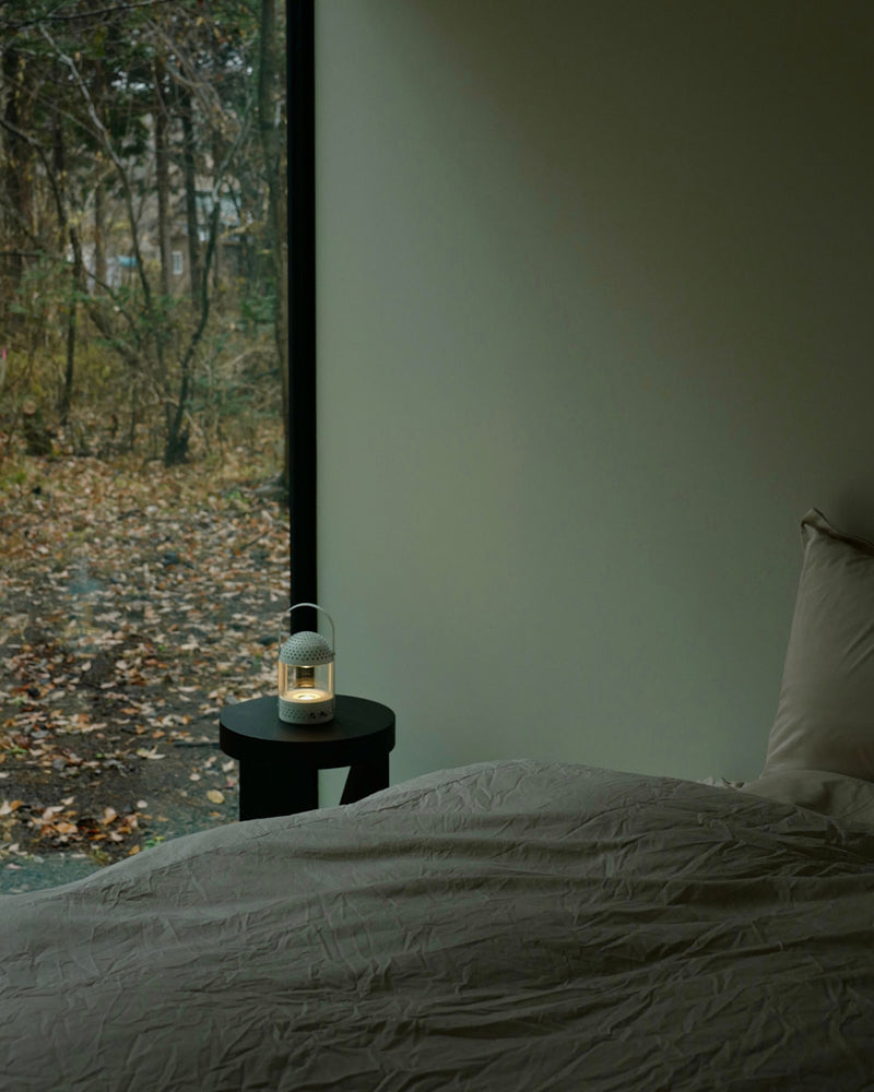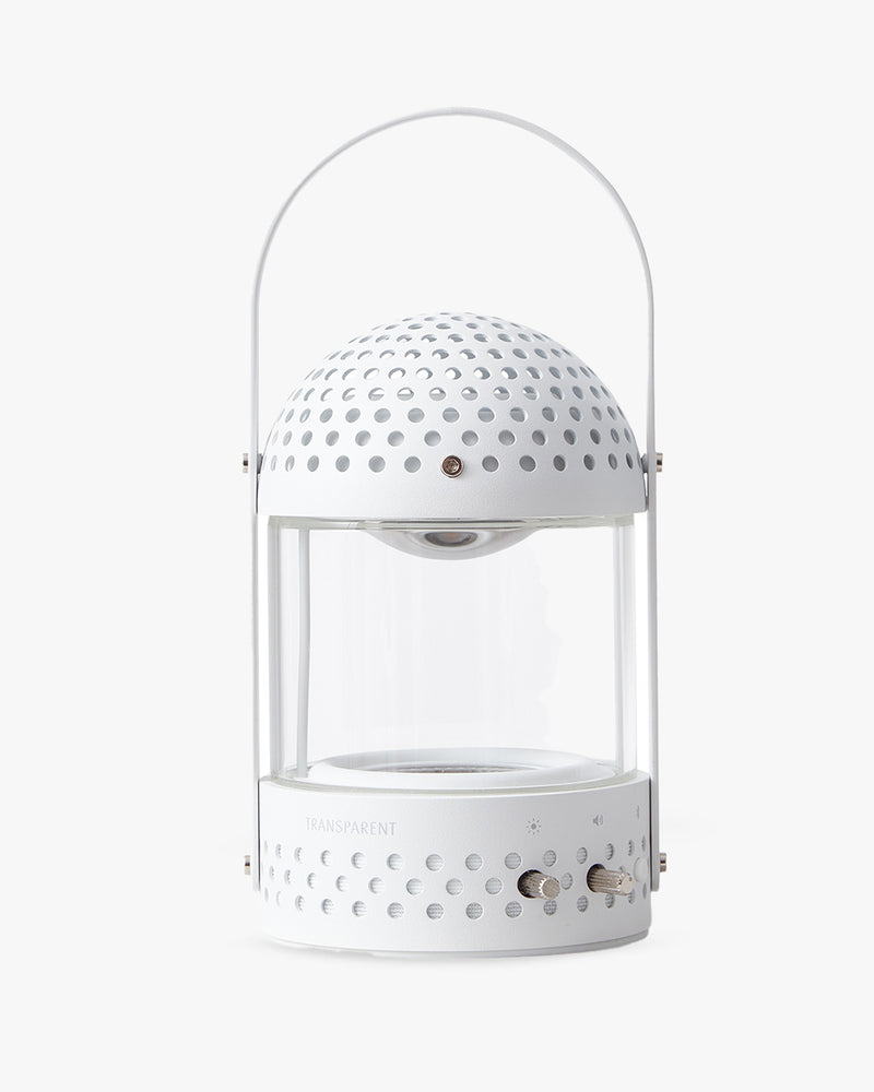 This design expression is a merger of an omnidirectional speaker and a glass lantern. A classic, functional and simplistic light device merged with new technology.