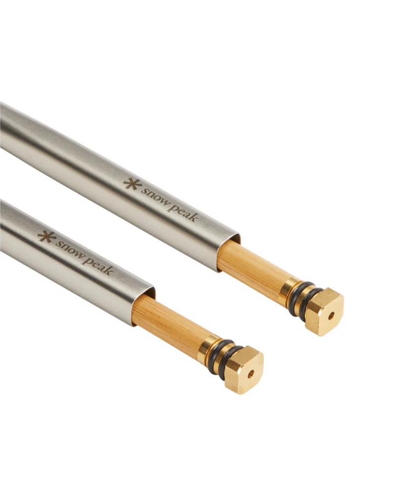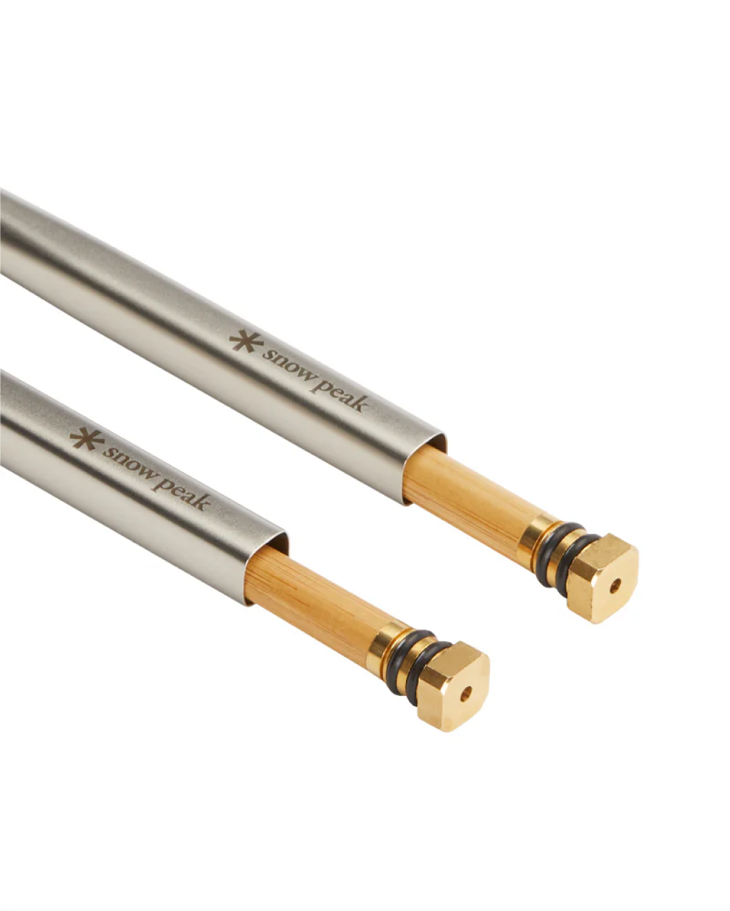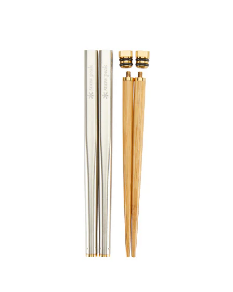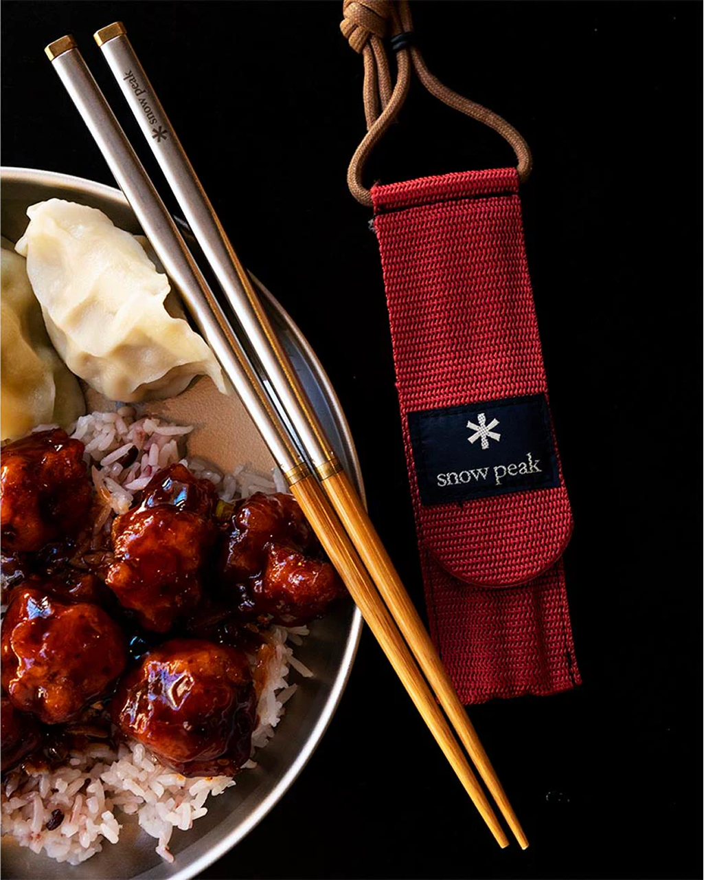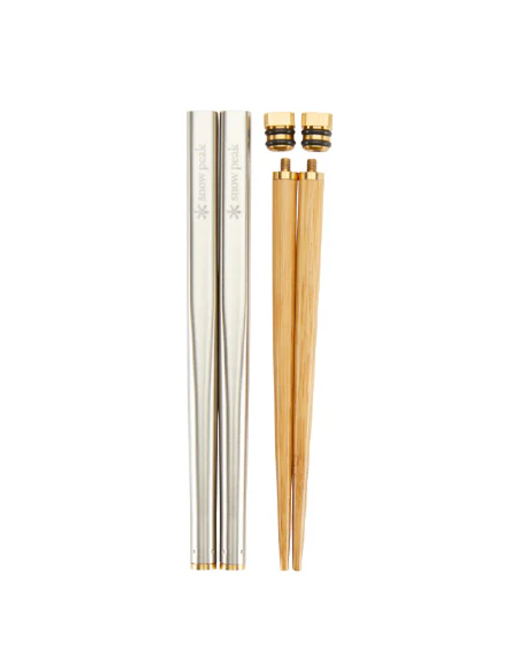 Designed in Japan and made of elegant bamboo and stainless steel, the Wabuki Chopsticks add style to any meal. Use the Wabuki Chopsticks for office lunches or campsite meals then store them in the slim case. To collapse the chopsticks, unscrew the tip of the chopsticks, nest inside the upper section, and tuck them into the carrying case for a compact dining utensil. Pair the Wabuki Chopsticks with the Titanium Trek Plate for a complete dining set.
